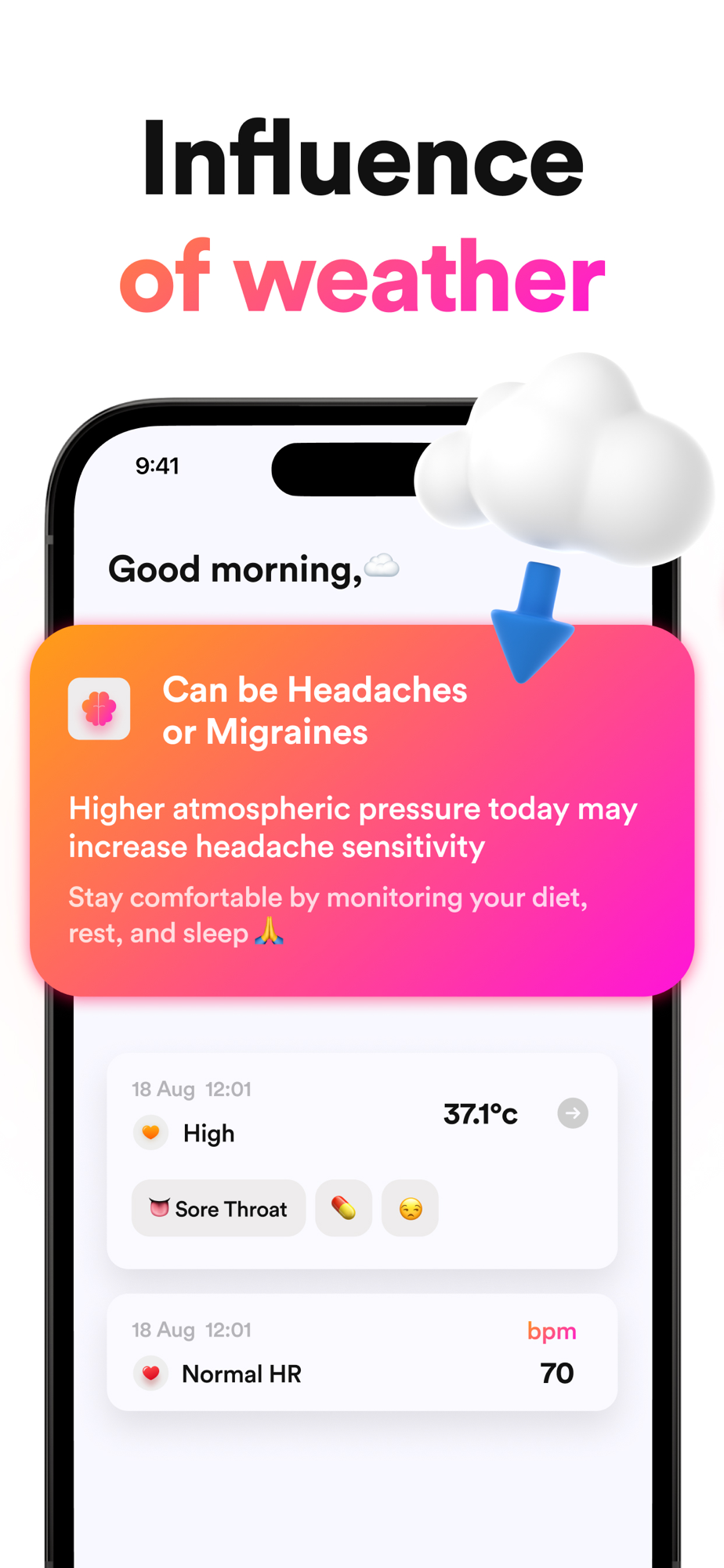 4. Weather and Well-being: Wondering how the weather will impact your well-being today? HealthTrack's weather integration feature provides personalized advice based on your health data and local weather conditions. Stay ahead of potential triggers like migraines or allergies and make informed decisions to optimize your day.