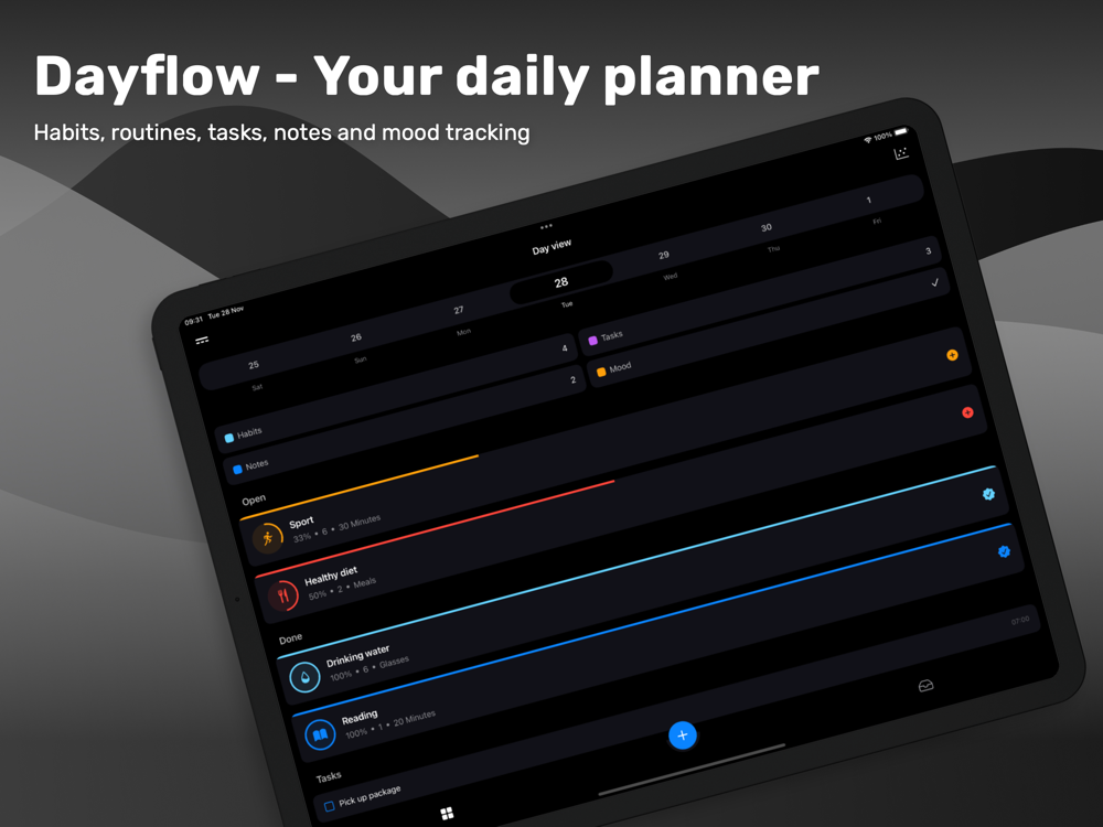 - Make lasting changes by tracking your habits with "Dayflow." Whether it's regular exercise, healthier eating, or staying hydrated, "Dayflow" supports you in achieving your goals.