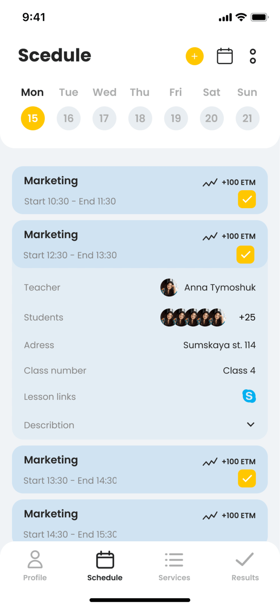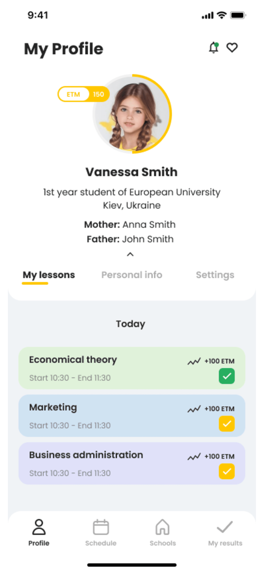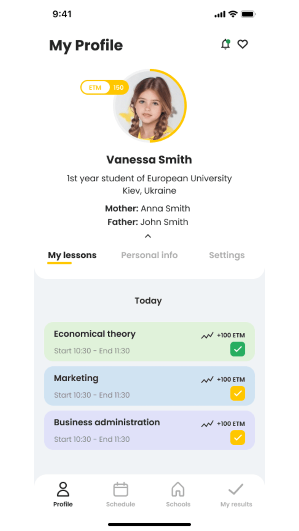 Personal account for students and teachers of companies that use ETM CRM (https://etmcrm.com.ua/) to run their business. The application provides the user with the following features: