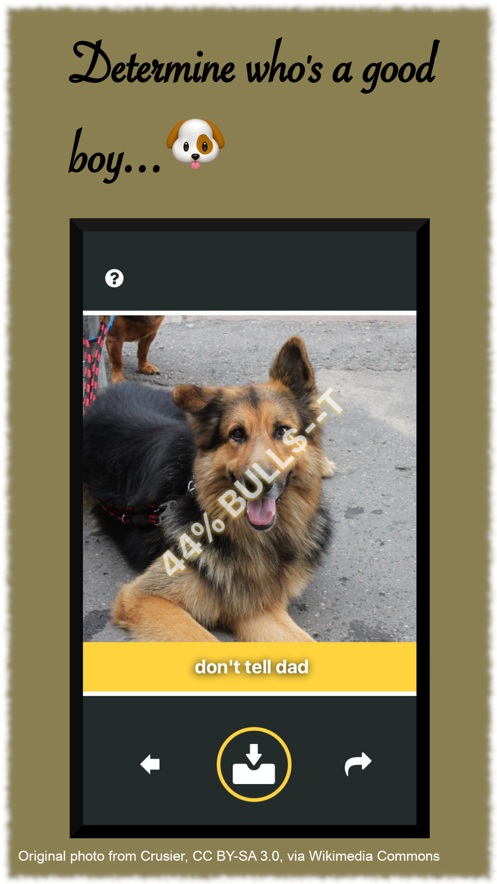 And that's it! Once you've successfully scanned the suspected source of BS, the app will use its highly technical scanning software to measure the quantity of BS emanating from this source. The results of this measurement will be displayed as a photo containing (1) an exact BS percentage point and (2) a caption. The percentage point gives you the quantity of BS; the caption tells you the quality of the BS.