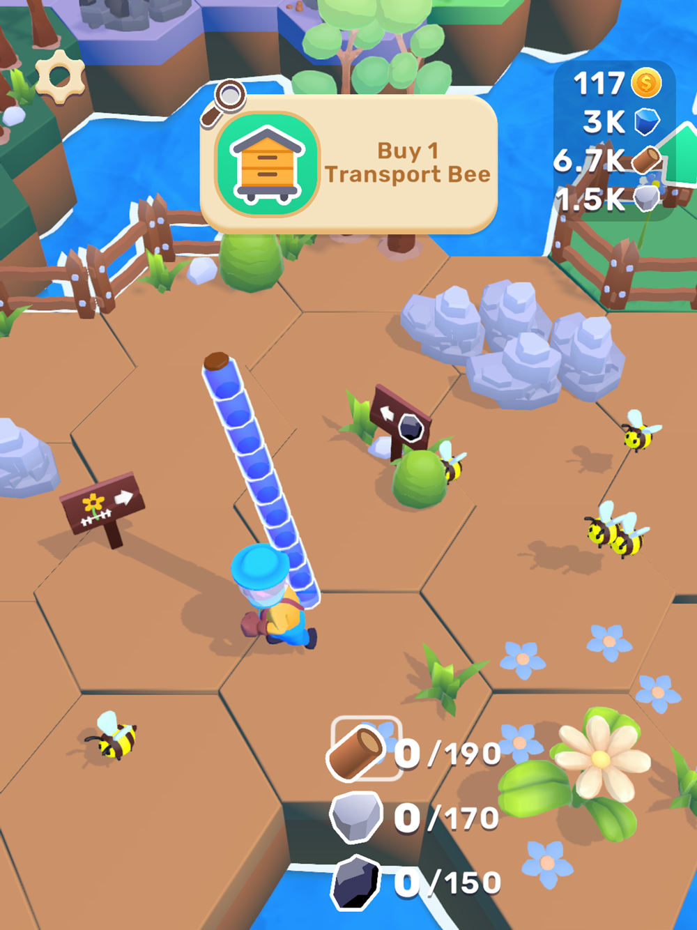 Your journey involves more than just honey production. Collect valuable resources like wood and stone to expand your territory, construct additional hives, and create a buzzing bee empire. Each new hive brings more opportunities, more honey, and, of course, more money.