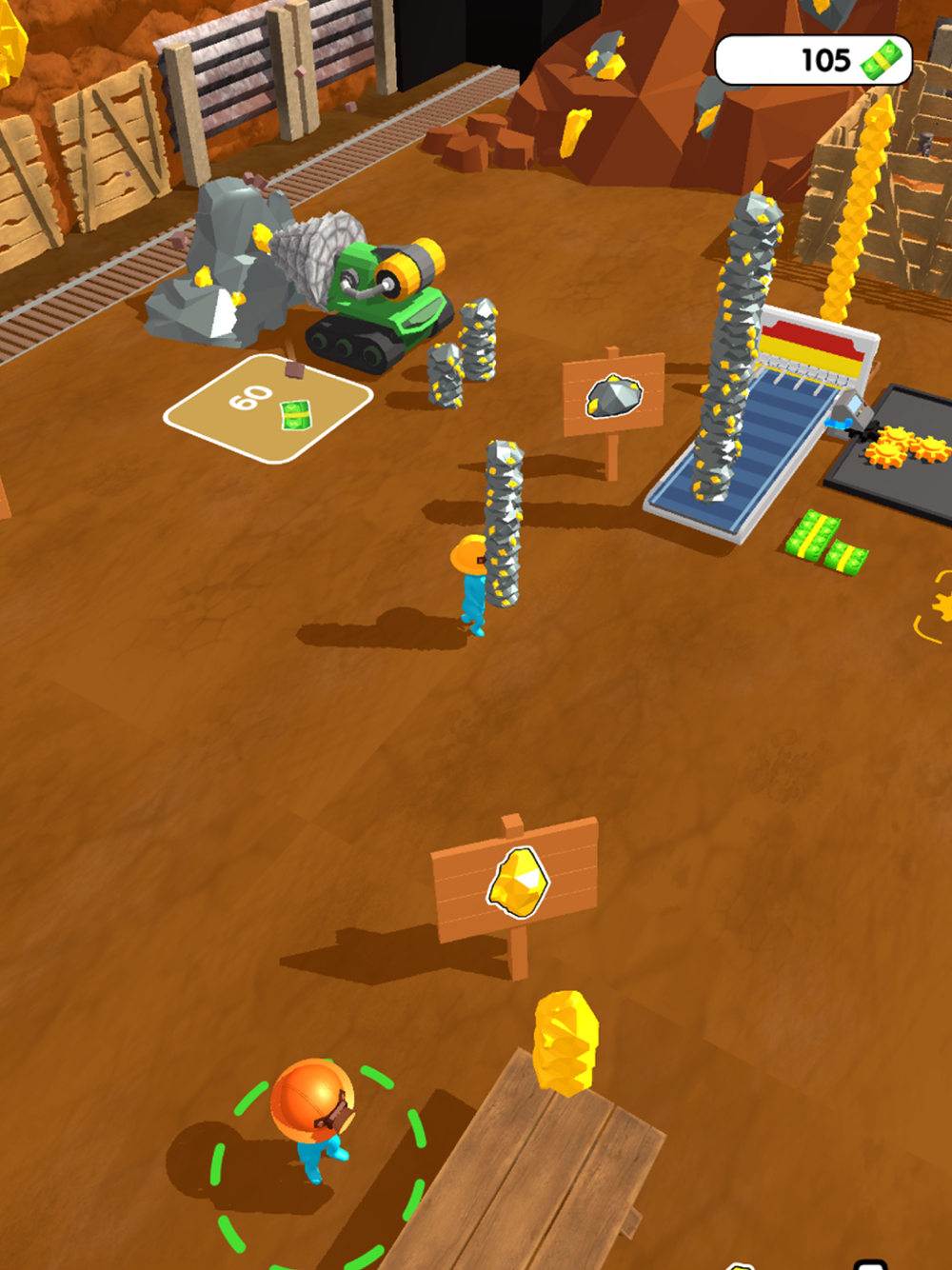 Mine stones, take out golds, and sell them. That is the way of a tycoon. You carry the materials as many as possible and more if you power up yourself or hire employees. This miner simulation game let you feel the growth of profit and the accomplishment in business. Let's be a great tycoon of gold mining!