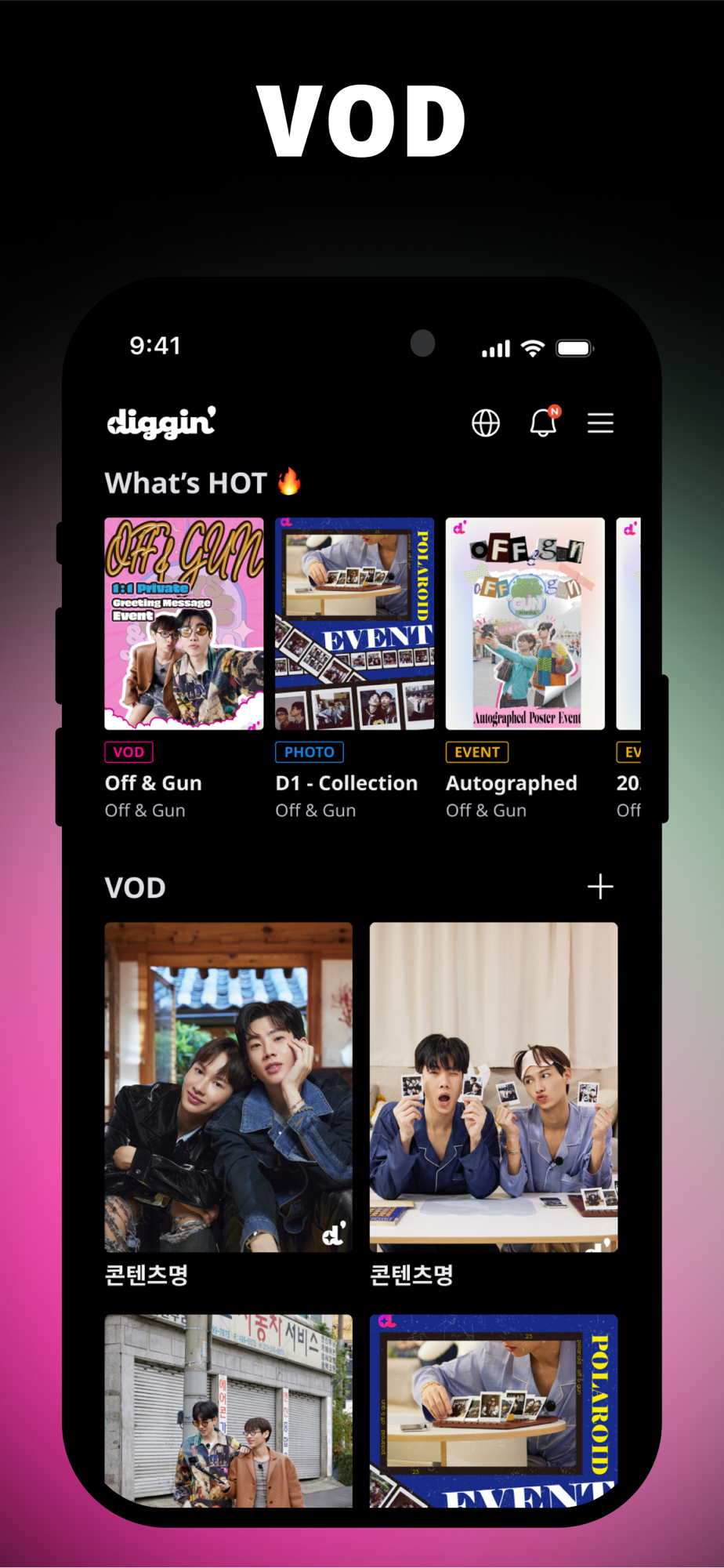 diggin’ 에서 스타의 콘텐츠를 감상하고, 다양한 이벤트에 참여해보세요.