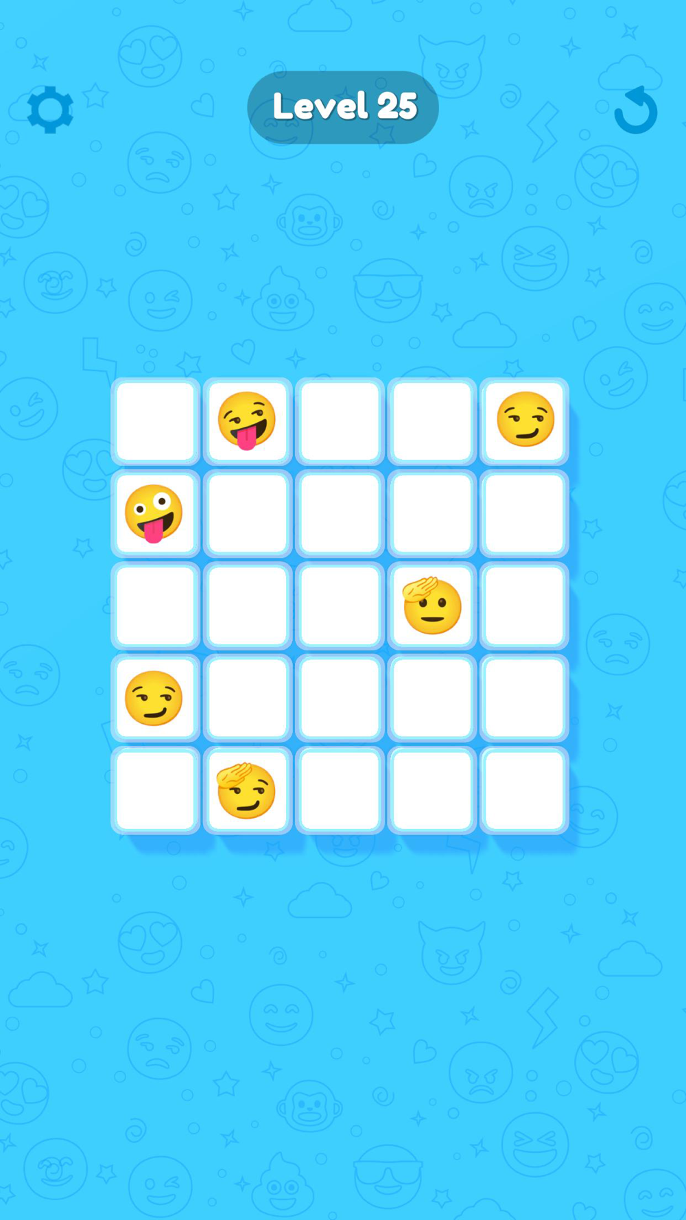 Connect identical emojis on the grid, initiating transformations in nearby emojis to complete the level. Each move is a strategic step in this puzzle, where the right connections can transform an icy face into a warm smile or turn a neutral face into one filled with hearts.