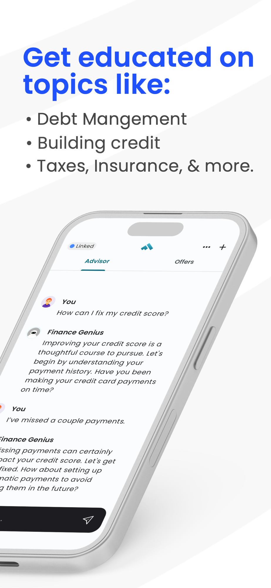 Welcome to Finance Genius, the revolutionary app that transforms your financial management experience through cutting-edge conversational AI. Designed with your financial goals in mind, Finance Genius offers personalized recommendations and insights tailored to your unique financial situation. Here's how we can help you take control of your finances: