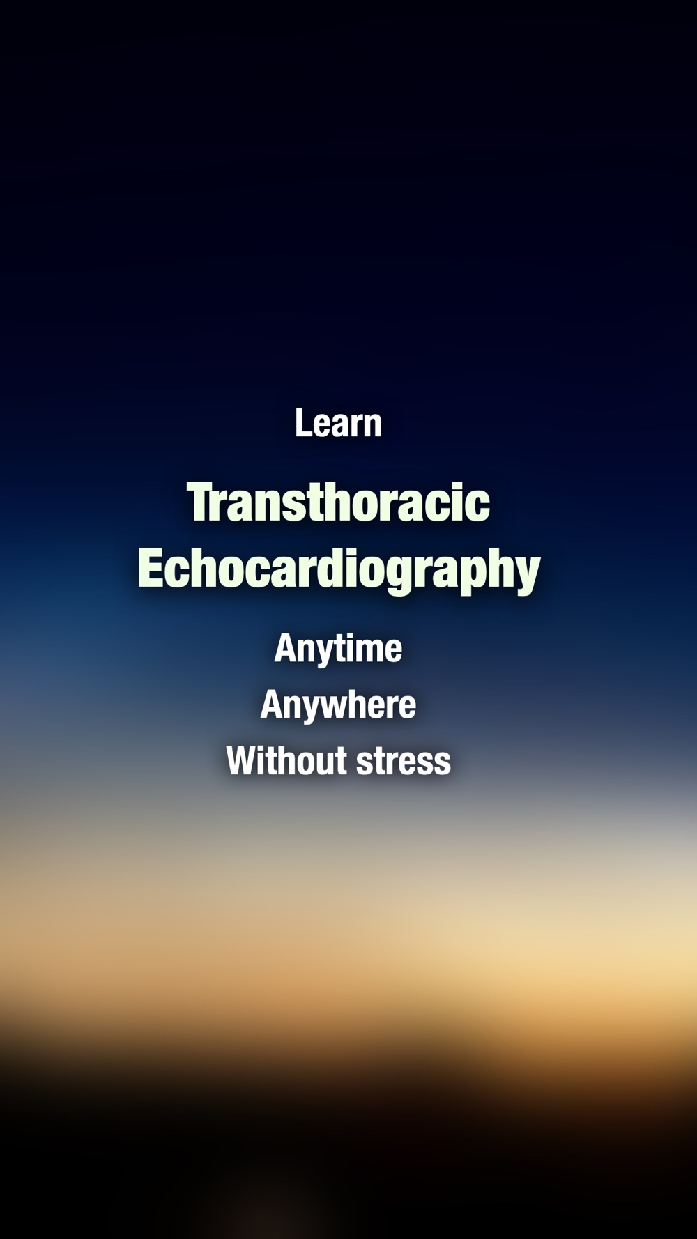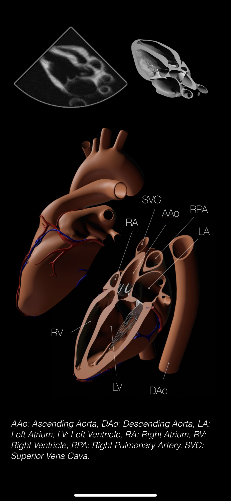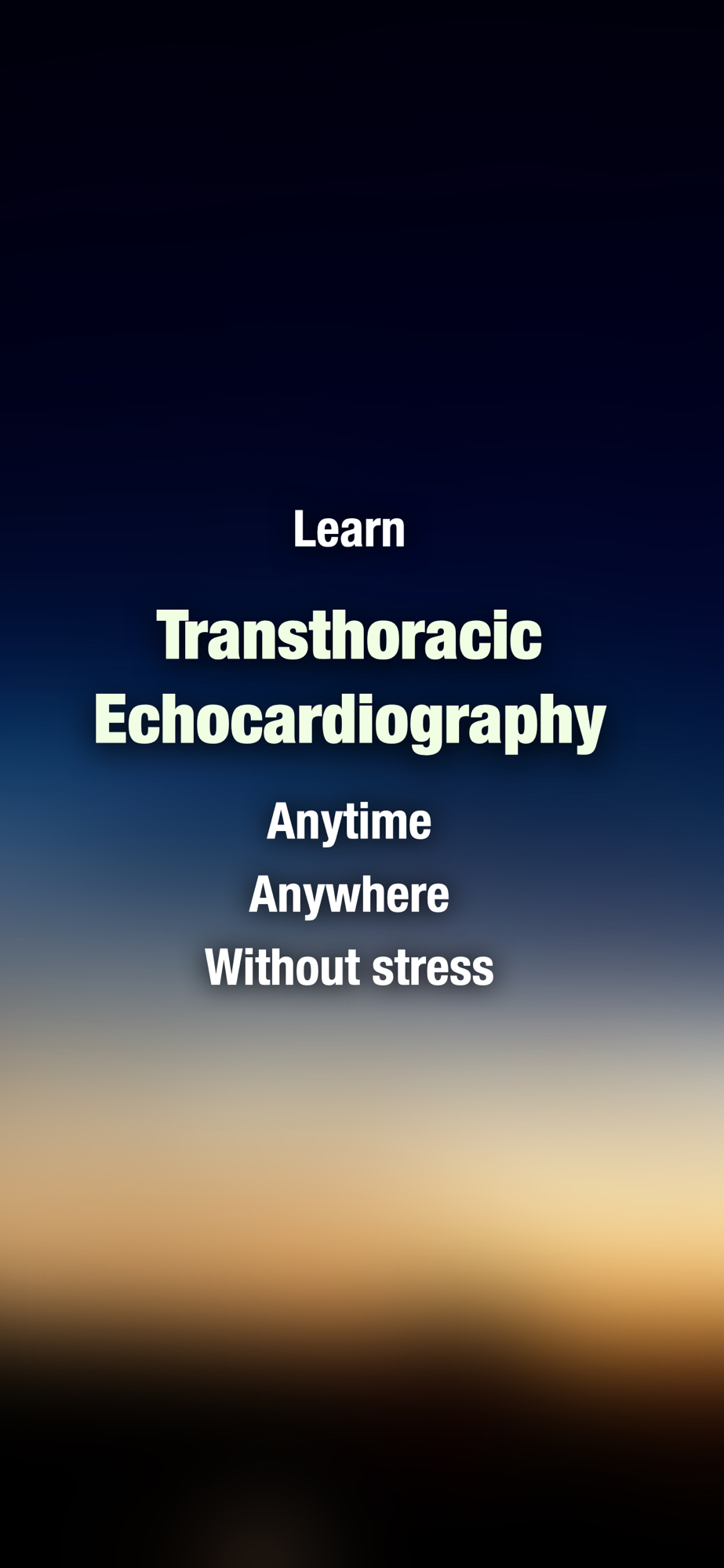A. The goal of this app is to help the user learn the skill of performing transthoracic echocardiography (TTE), by means of an 'interactive anatomy book', with a user interface emulating an echo probe and a patient. The app uses synthetic echo images based on an artificial 3-dimensional human heart model, with interactive labeling to show what anatomic structures are being displayed. This app is NOT able to actually perform a real ultrasound examination on a real patient, neither is it able to transform your device into a real ultrasound machine, nor is this app intended to provide any medical diagnostic or therapeutic guidelines whatsoever. Always seek a doctor’s advice in addition to using this app, and before making any medical decisions.