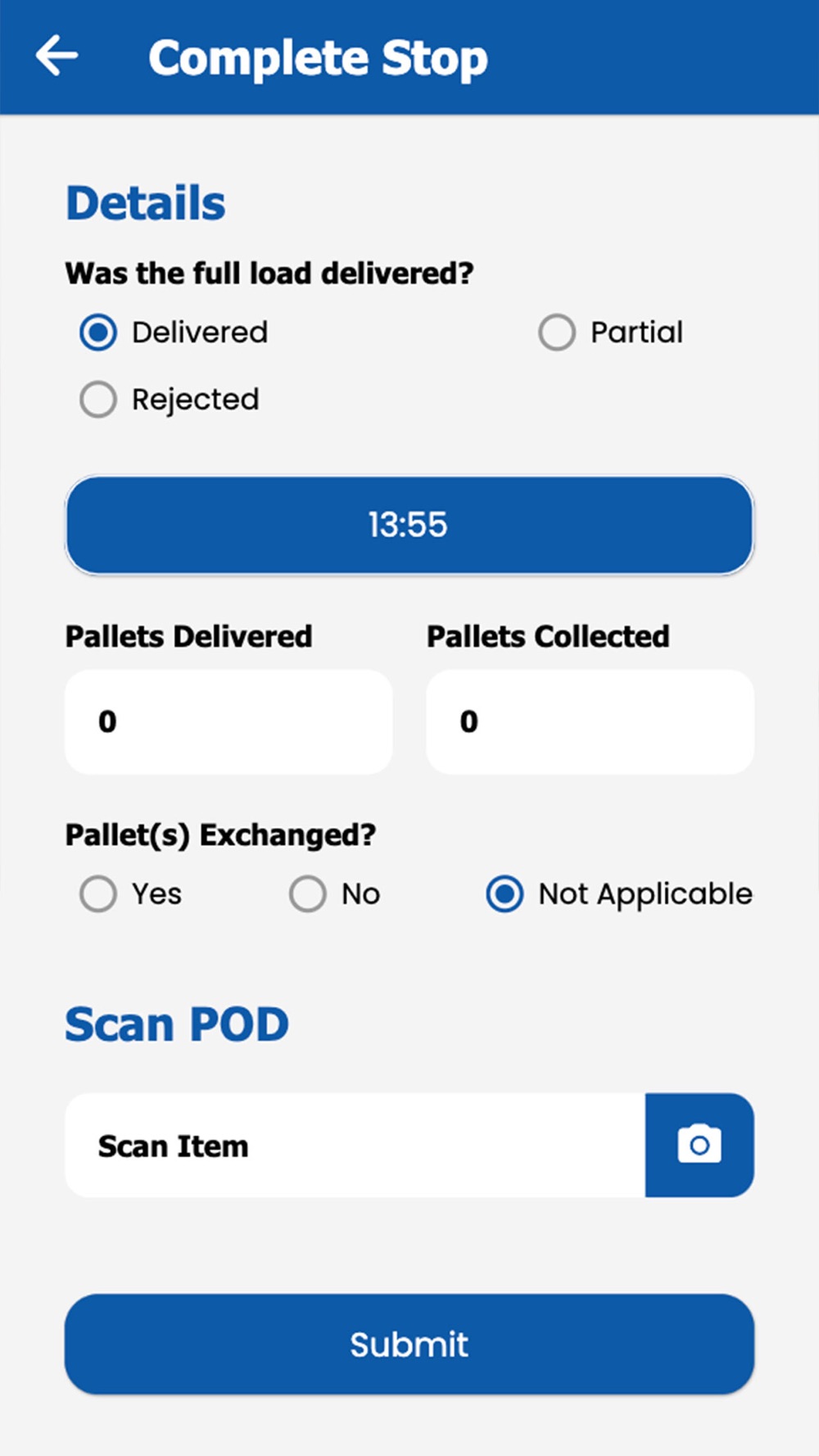 While loads are in progress, the app collects regular background location and sends it through to the backend so that Blupath Technologies Ltd can provide feedback about estimated arrival times.