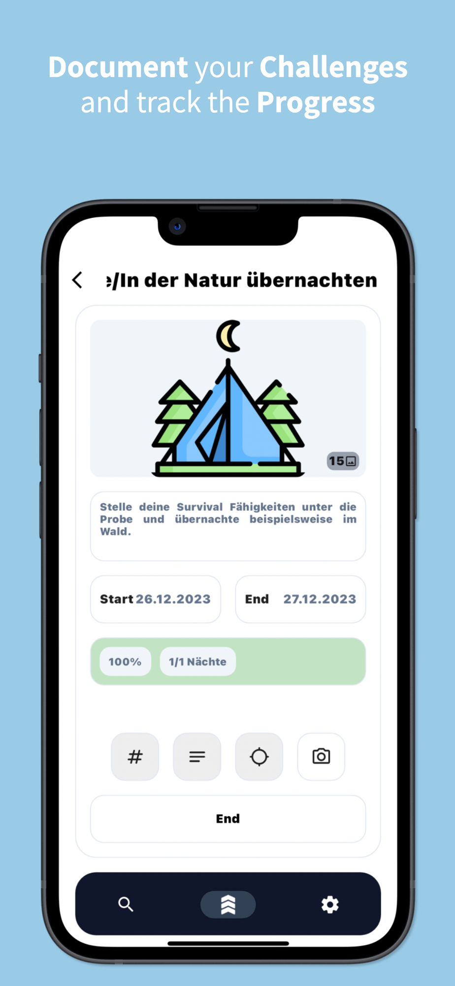 - a list with 100+ Challenges in various categories like physical health, mental health, knowledge, work, free time, ...