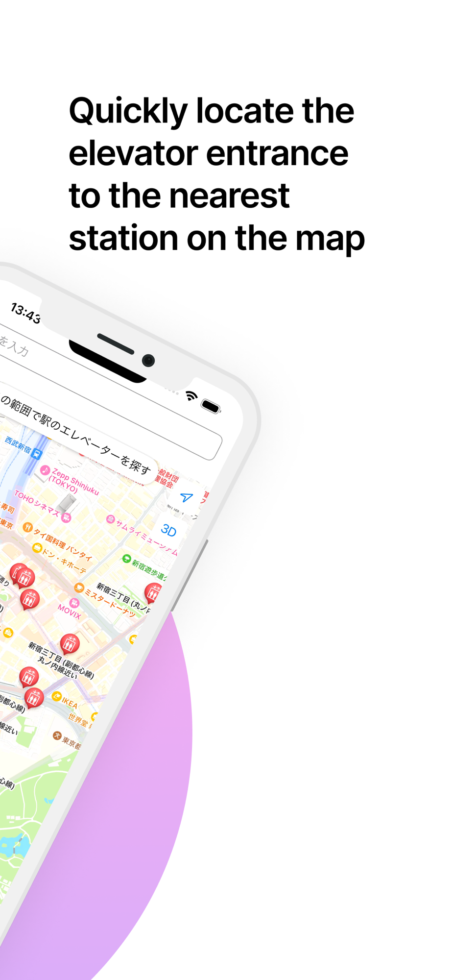 1. elevator location finder: When the user taps the "Find Elevator" button, the app displays the elevator entrances and exits at the nearest stations on the map. This allows the user to go directly to the elevator without getting lost. 2.