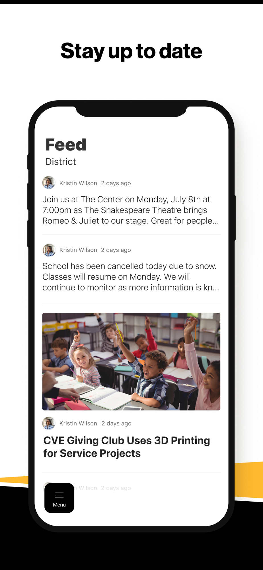 In the Live Feed is where you'll find updates from the administration about what's going on in the district right now. Whether that's celebrating a student's success, or reminding you about an upcoming deadline.