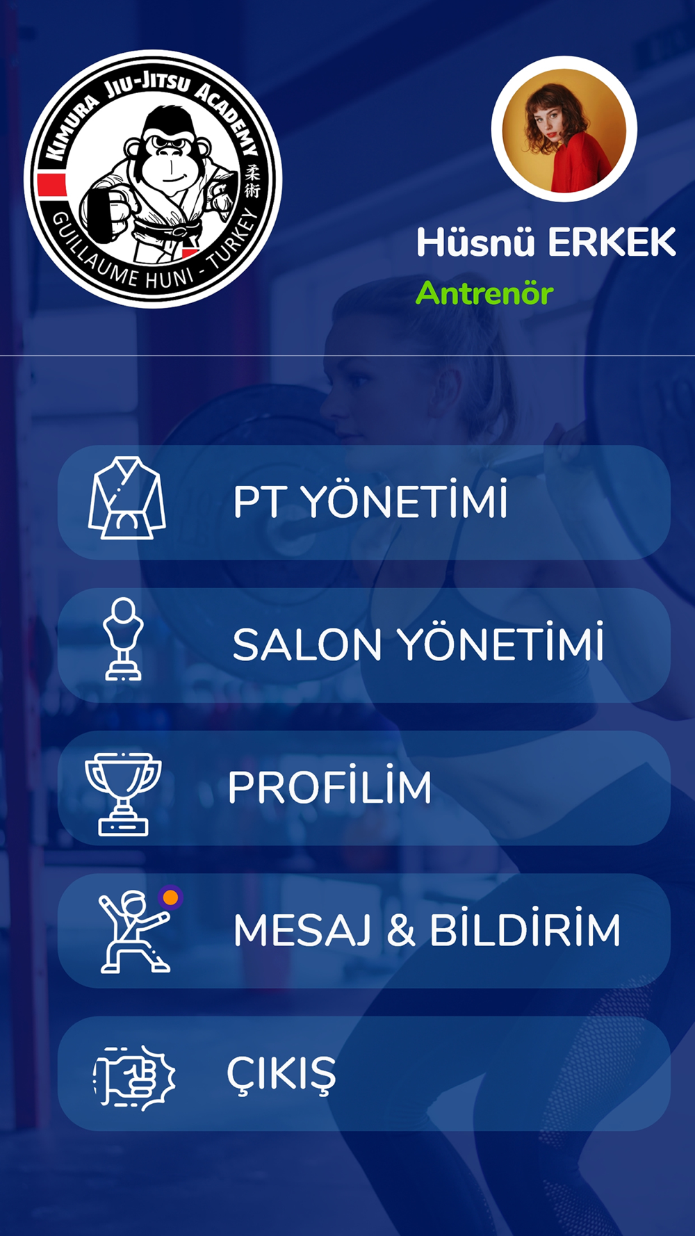 Kimura BJJ Oran için yazılmış uygulamamızda, Günlük antreman ve antreman katılım sağlayacak üyelerin antreman kayıtları, üyelik yenileme, Kalan gün bilgisi, Kişisel Veriler, BJJ-MMA-KickBoks-Wresling Antremanları ve Kayıtları,, Coach Antreman Onayı, Antreman Coach Bilgisi, Sms ve Bilgilendirme Gönderme, Coach Tanımlama ve PT Coach Atama, Tüm üyelerin bilgileri, Raporlama