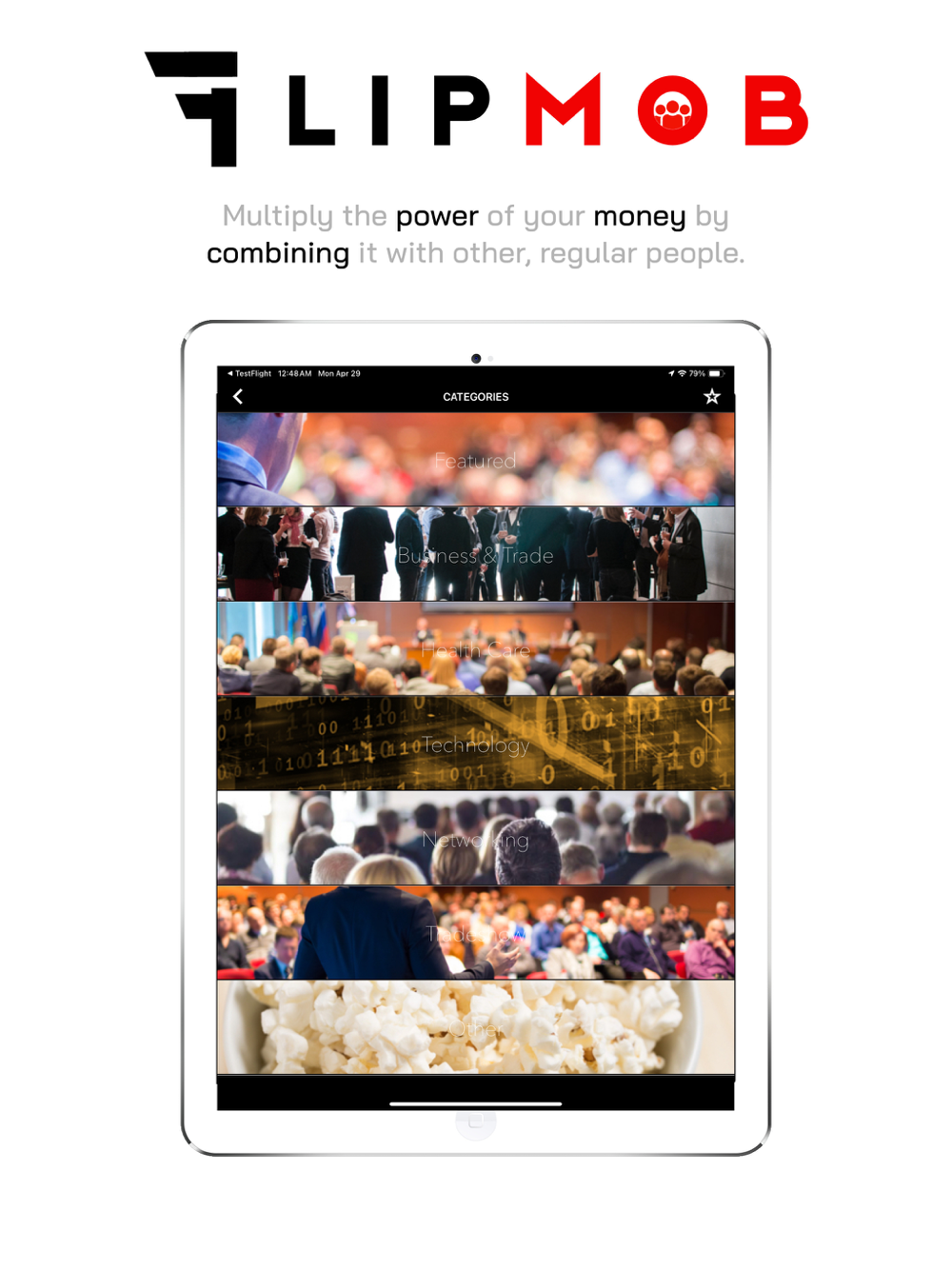 FlipMob helps everyday people and even businesses easily connect, communicate and combine their money to increase their buying power. Members can create flip mobs around almost anything imaginable from for-profit opportunities to events to savings opportunities - or even flip mobs just for fun.