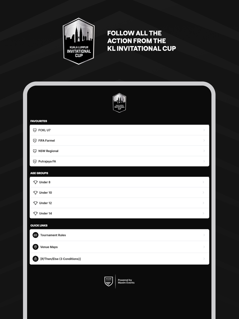 The official app of the KL Invitational Cup by Maxim Events. Check scores, follow fixtures, manage your club and follow your favourite teams through Malaysia's elite grassroots football tournament