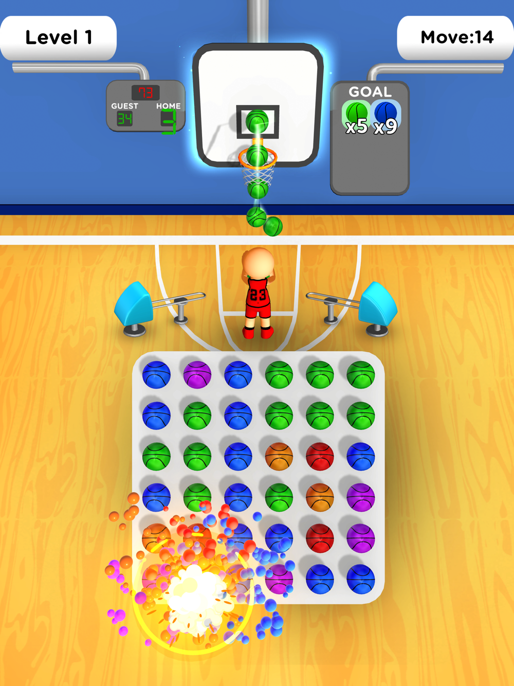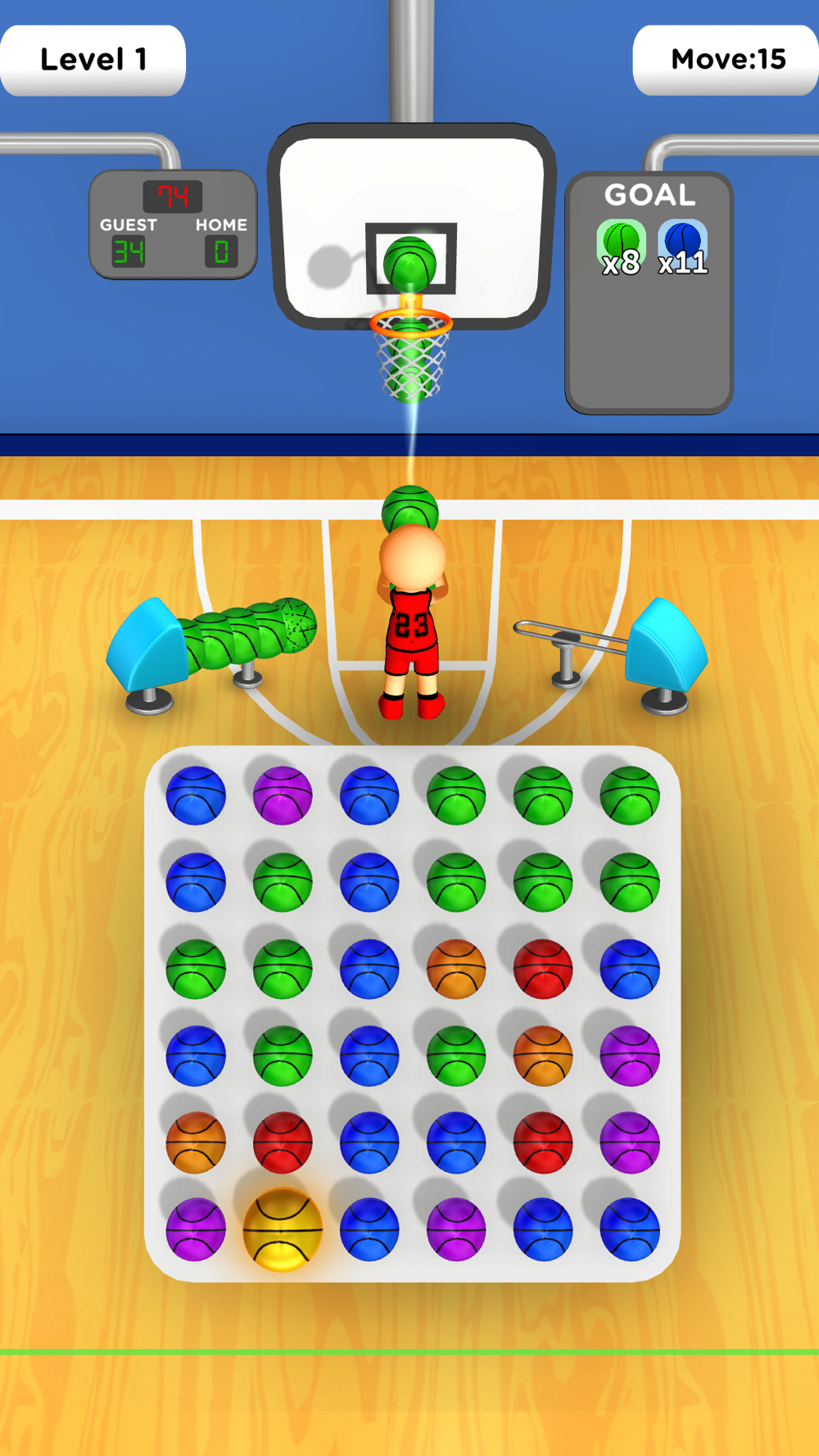 As you swiftly gather the balls, your basketball player readies for action, translating your collections into spectacular basket shots. The faster you collect, the quicker the shots, turning your puzzle prowess into impressive scores.