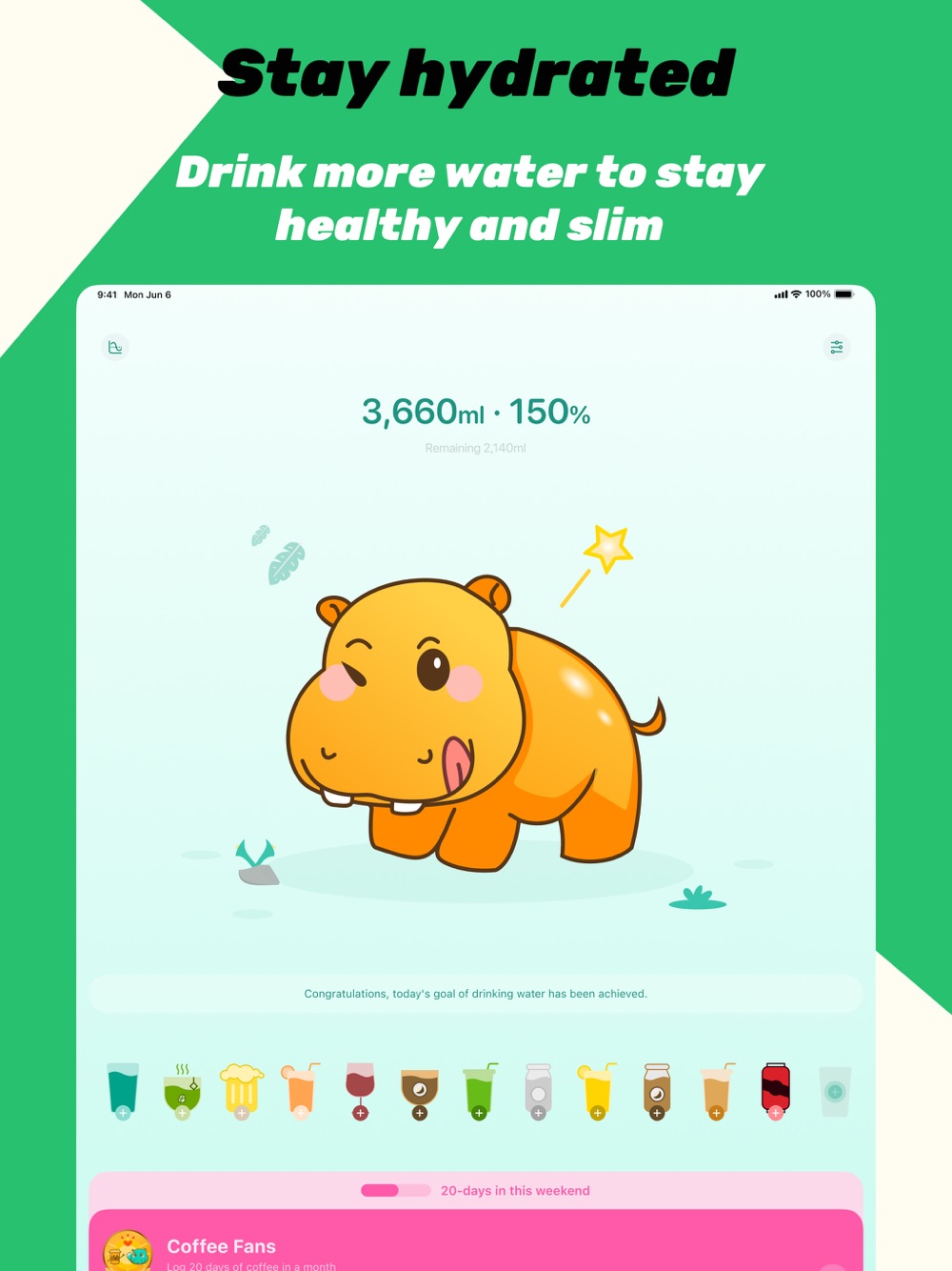 Good thing Water Alarm - Drink Reminder app is here to remind you to grab a drink with hippo.