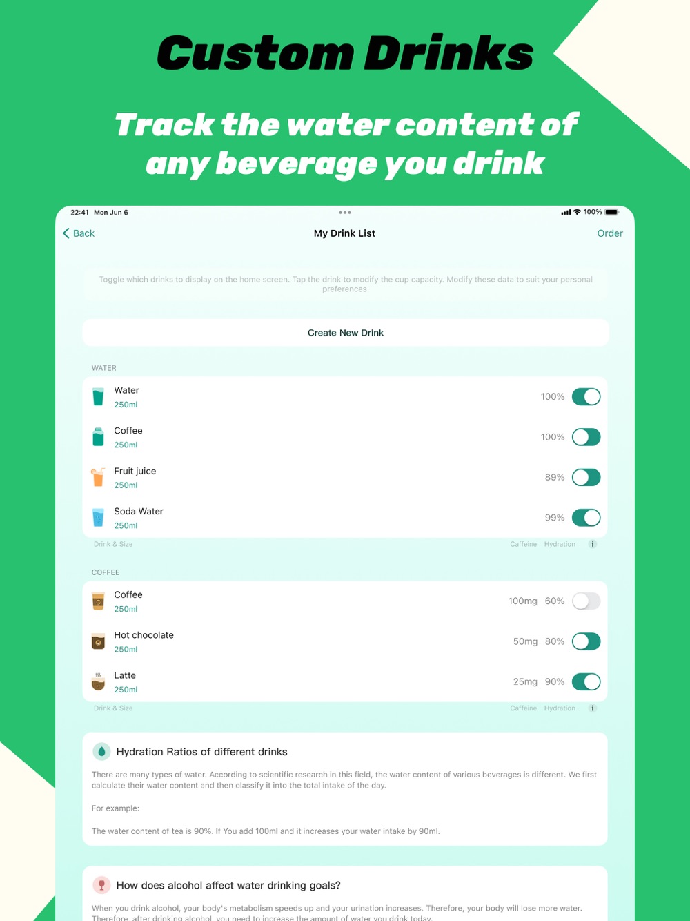 • Offers more than just oz/ml units – you can also track a variety of different beverages, including water, tea, coffee, and more, to get a complete picture of your daily hydration. With this feature, you can easily monitor your intake of all types of fluids and ensure you're staying adequately hydrated throughout the day. Whether you prefer to drink water, tea, coffee, or other beverages, our app has got you covered.