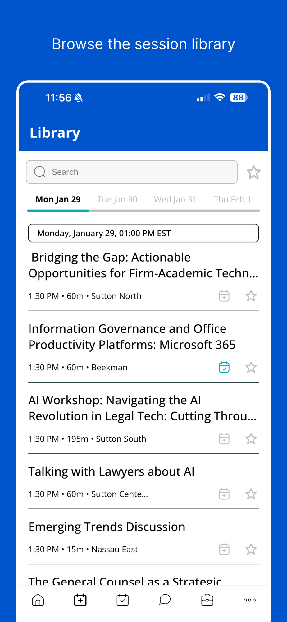 Get the most out of your event experience with the app when you have your personalized agenda at your fingertips. Additionally, the entire content library is included with rooms, dates, and times for your preferred sessions. You can also check out sponsors, view important event information, and even connect with other attendees.