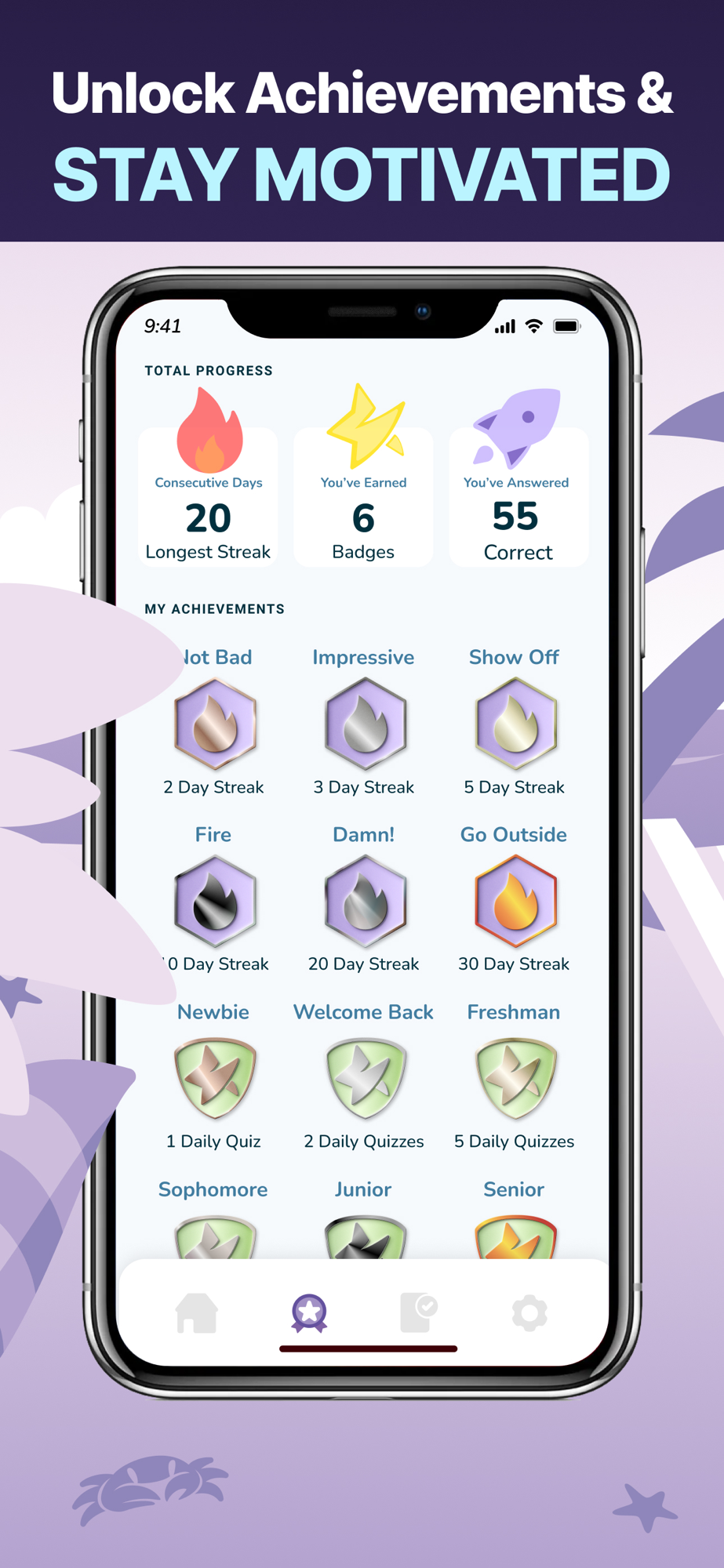 • Streaks and achievements to keep you going even when your caffeine wears off