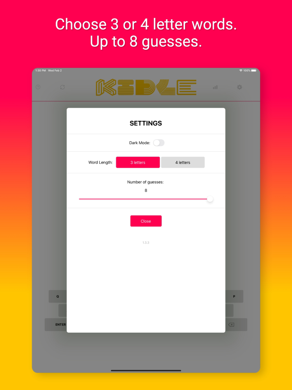 Kidle is a word-guessing game for kids of all ages. Choose from 3-letter or 4-letter words. Have the app read the solution and all guesses out loud. Play unlimited games!