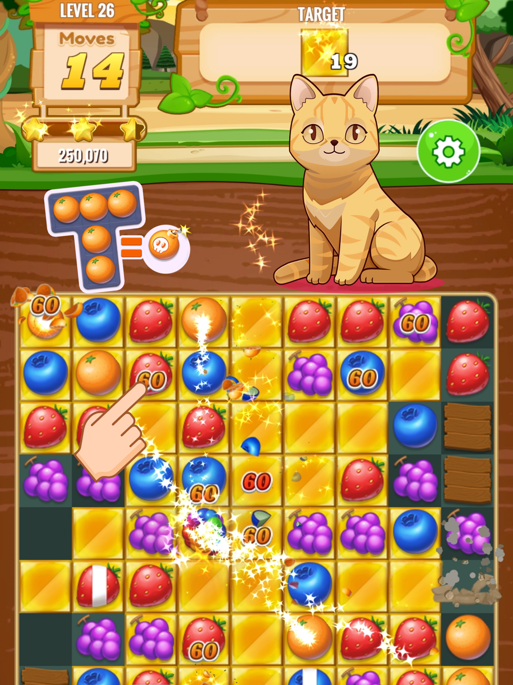 - Match five pieces to create a magical rainbow arch, which can collect all fruits of the same color.