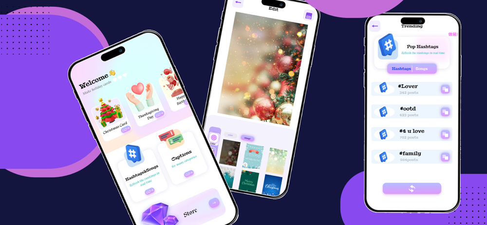 Not only can you make your own holiday posters, but you can also learn about music and Hashtags trends.