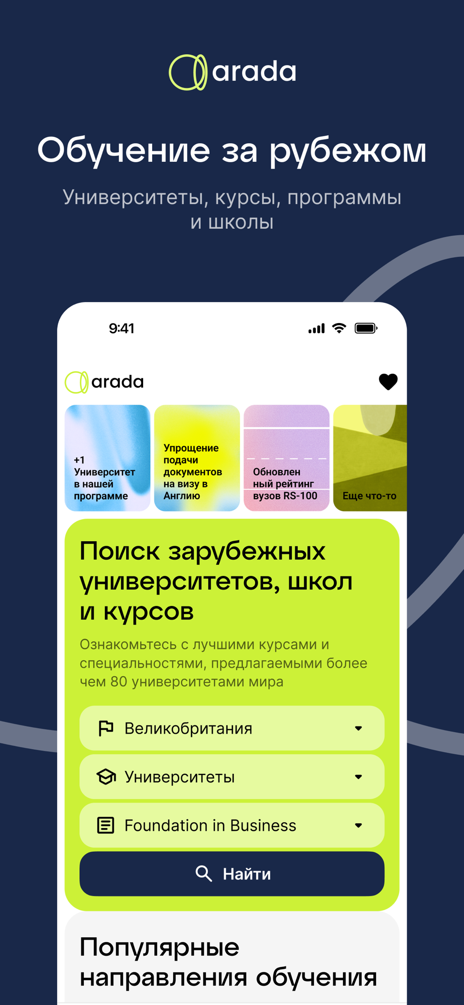 В Arada мы понимаем, что обучение за границей имеет много преимуществ. Мы можем помочь тебе реализовать амбиции:
