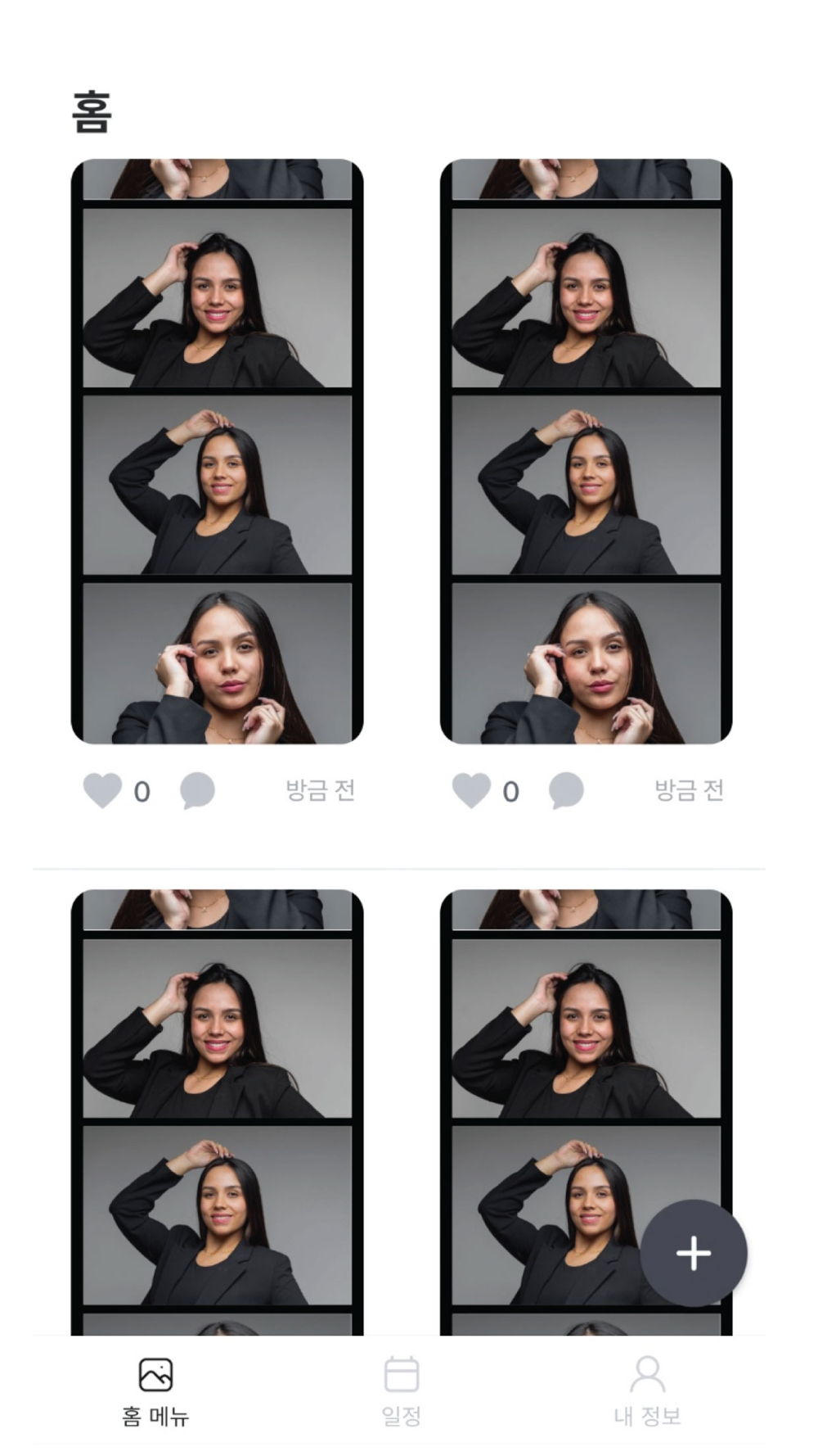 - 홈 화면에서 네컷 사진과 촬영한 날짜를 지정하여 업로드하세요.