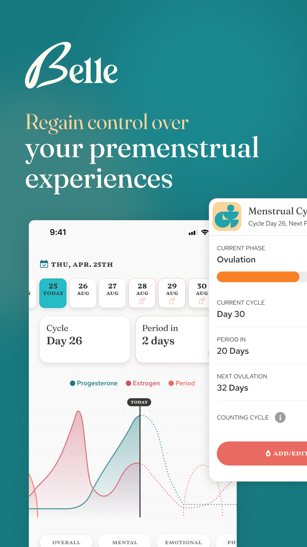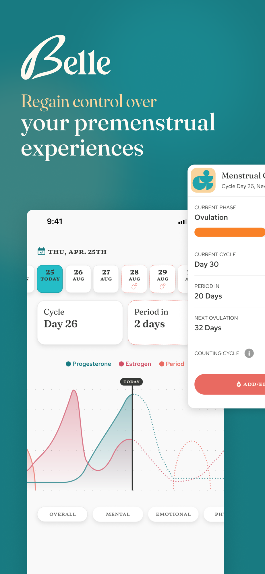 • Cycle Tracker – Stay ahead of hormonal changes.