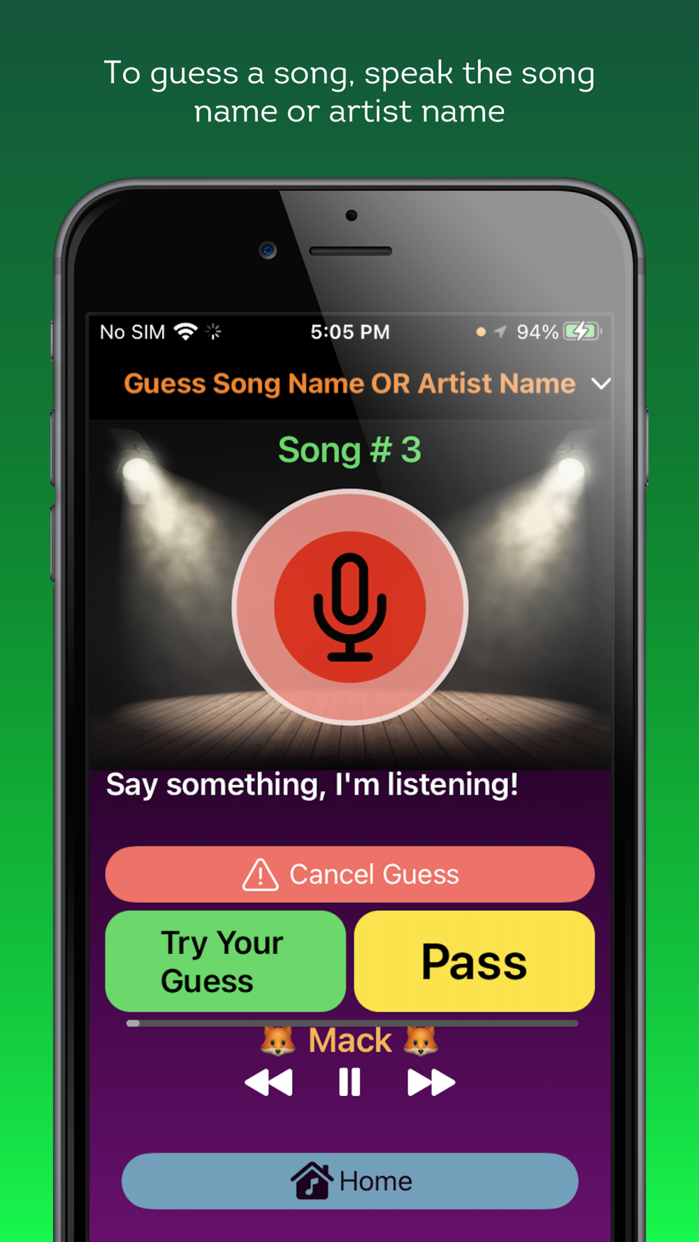 An Apple Music (iTunes) powered “name that tune” style game. Speak your guesses out loud! Can be used with multiple players or solo. Players can be added or removed from the game as needed. Points are awarded to players based on the number of correctly guessed songs. Uses the Apple Music catalog that’s built in to your iPhone and uses the songs you've downloaded to your device for a personalized experience. It’s fun to play and has genre based animations, intuitive game play, full control over song selection and has a Shuffle Play feature. Try it risk free with our 7-Day Free Trial!