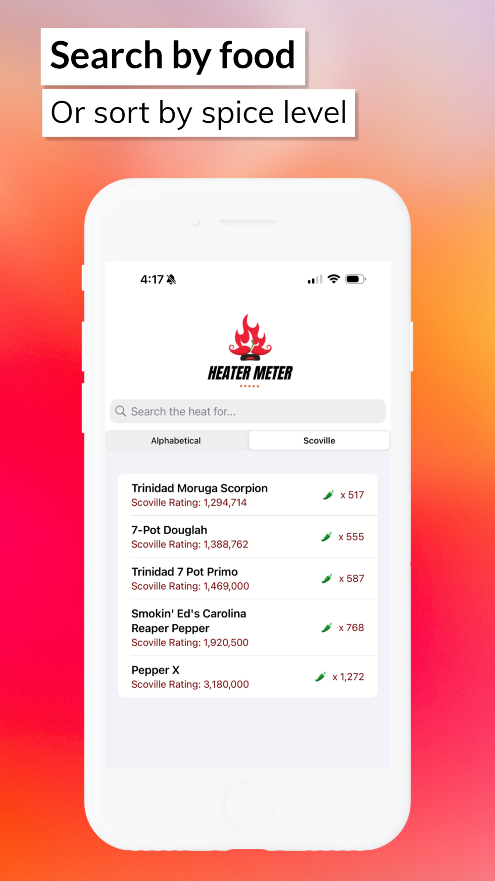 Sorting Options: Customize your experience by sorting peppers alphabetically or by Scoville rating.