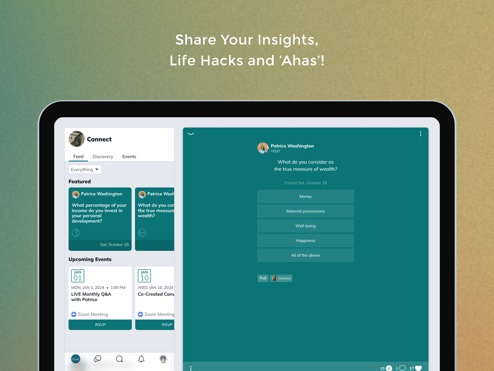 + Participate in daily discussions and insights that elevate your mindset around wealth-building and personal fulfillment.
