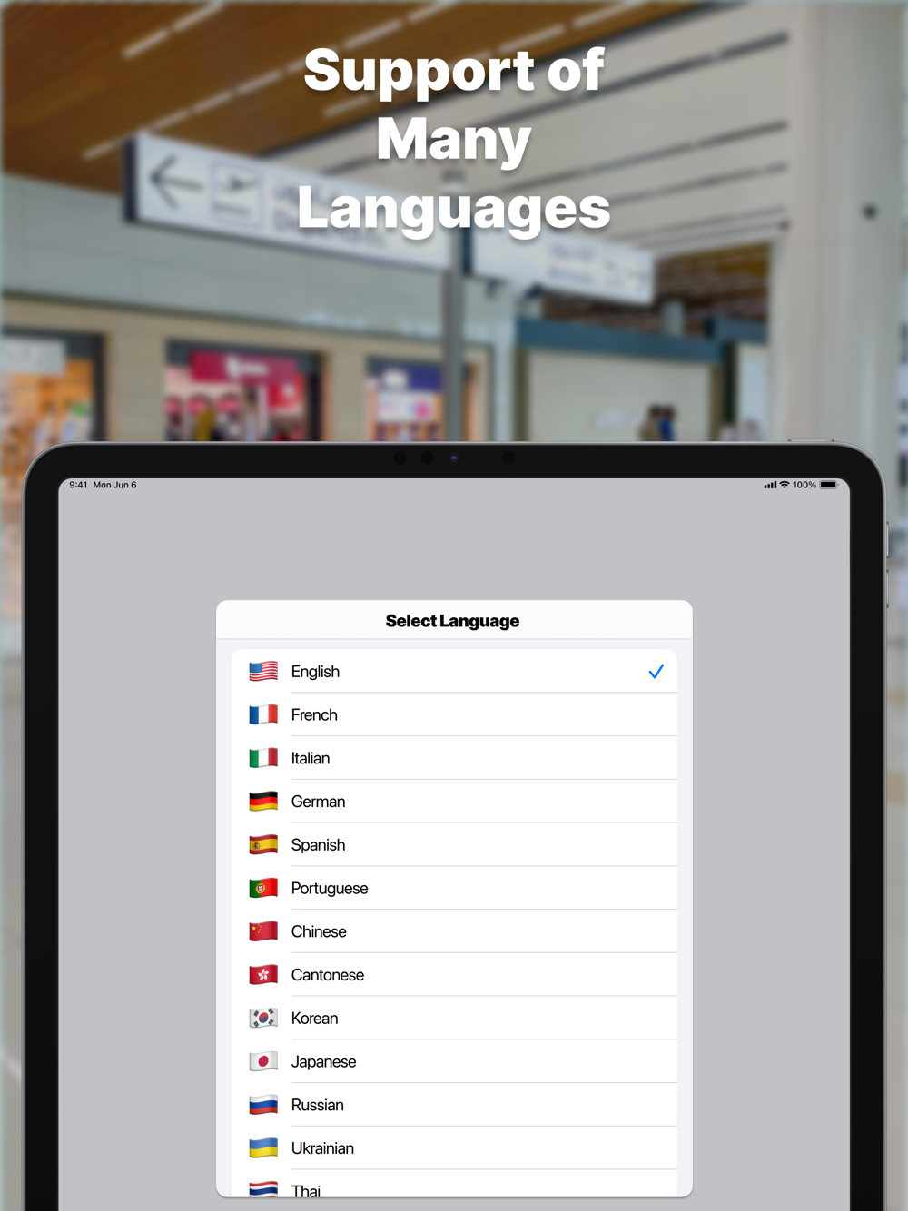 Chineses, Cantonese, Korean, Japanese, Russian, Ukrainian, Thai.