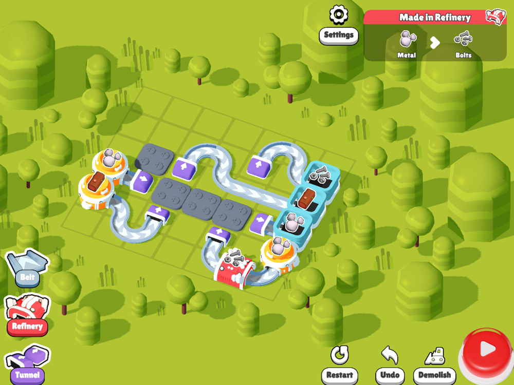 Puzzle: Connect machines to create new items. Transform items to create more new items.