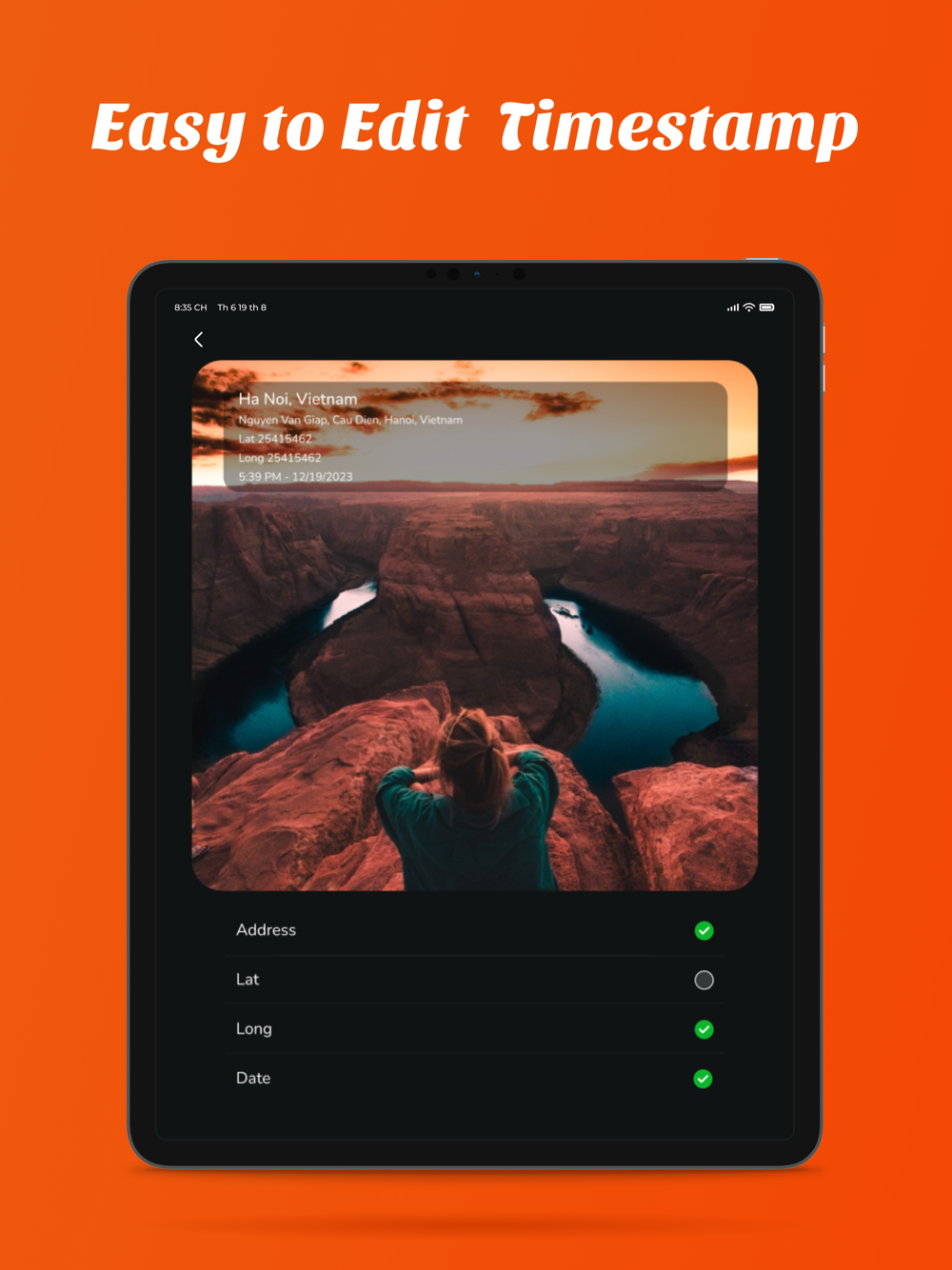- Privacy Control: Choose when and where to add location and time data, giving you full control over your privacy.