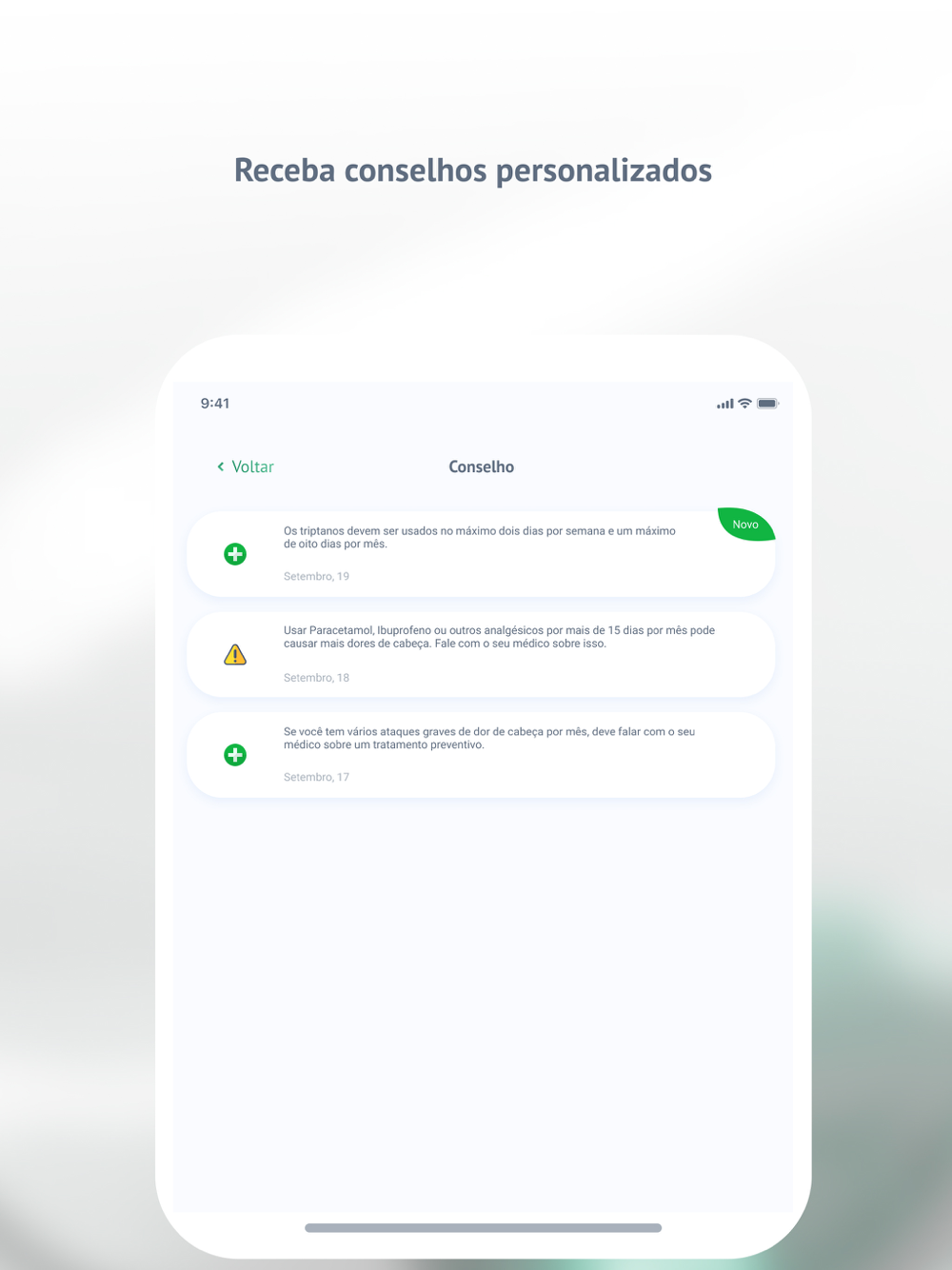 Você receberá aconselhamento específico e personalizado em relação aos seus registros e uso de medicamentos.