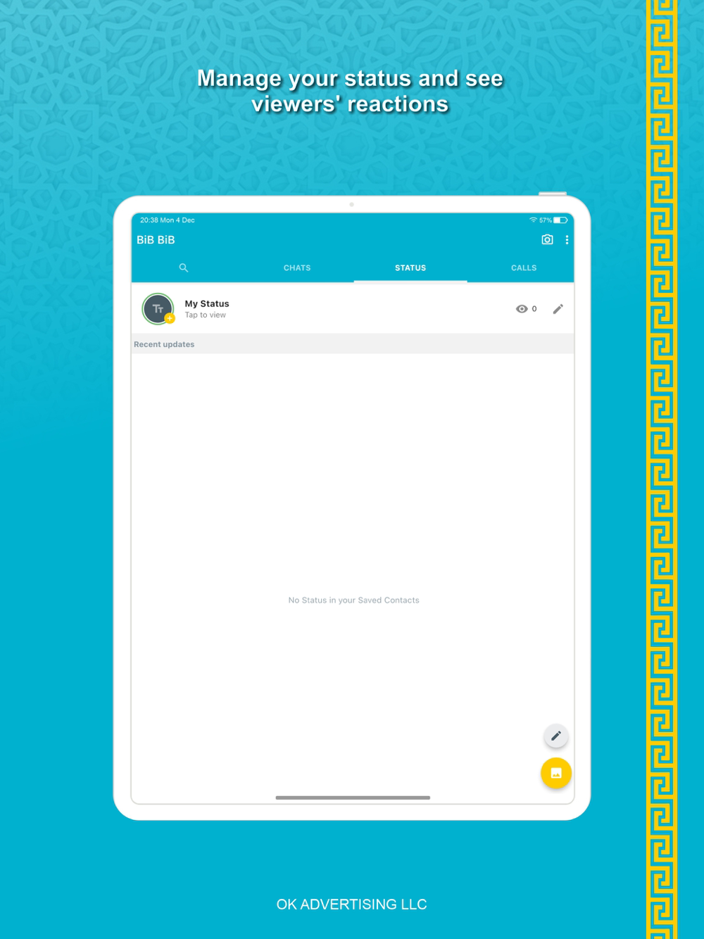 On top of core communication features such as instant messaging, HD quality voice, and video calls; BiB BiB presents a secure way to share photos, documents, voice messages, location, and your memories in your status. BiB BiB also offers a wide range of services depending on your region and channels, allowing you to reach large audiences.