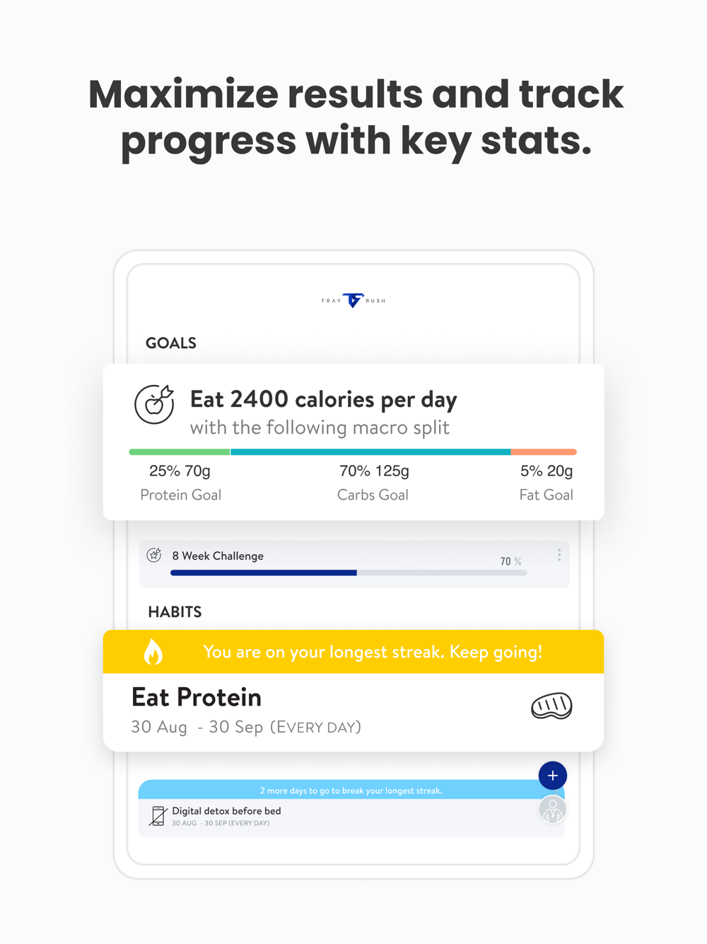 Connect your Apple Watch to track workouts, steps, habits, and more right from your wrist. Connect to other wearable devices and apps like the Apple Health App, Garmin, Fitbit, MyFitnessPal, and Withings devices to track workouts, sleep, nutrition, and body stats and composition.