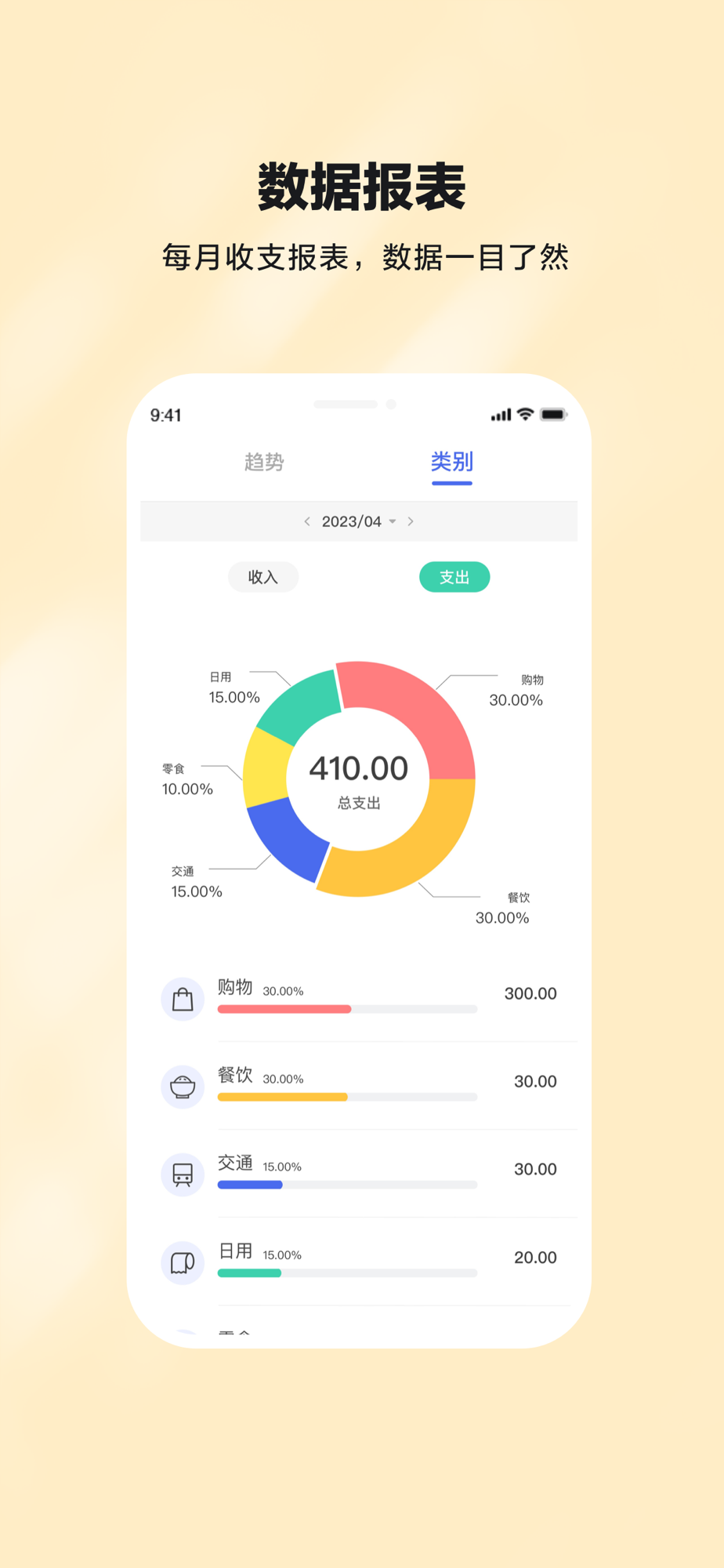 **图表和报告**视觉化的图表和详细的财务报告,帮助您清晰了解资金流向,数据一目了然,轻松掌握财务状况。
