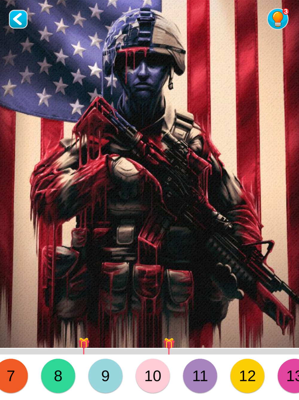 America Tattoo - Color by Number invites you to explore the art of coloring in a patriotic way. Enjoy a diverse collection of tattoo designs inspired by American culture, history, and symbols. Whether it's the American flag, the Statue of Liberty, or the bald eagle, you'll find something to express your love for your country. Coloring these stunning tattoos will help you relax and unwind after a busy day.