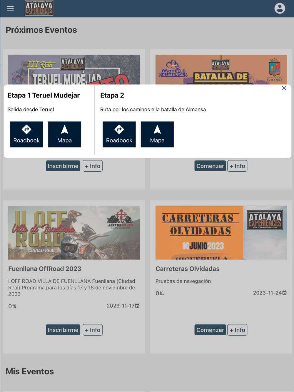 Con la aplicación de AtalayaExperiences podrás participar en los eventos de navegación con Roadbook o GPS que organizamos por parajes increíbles.