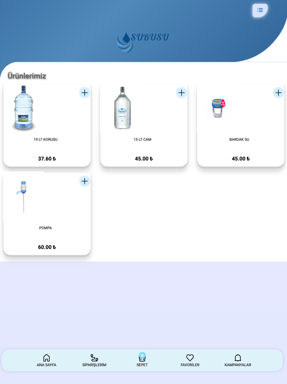 Subusu Mobil Sipariş Uygulaması ile sipariş vermek artık çok kolay! Damacana, Cam Damacana, Pet ve Bardak Su siparişlerinizi uygulamadan verebilir, kredi kartı ve kapıda nakit ile ödeme yapabilirsiniz.