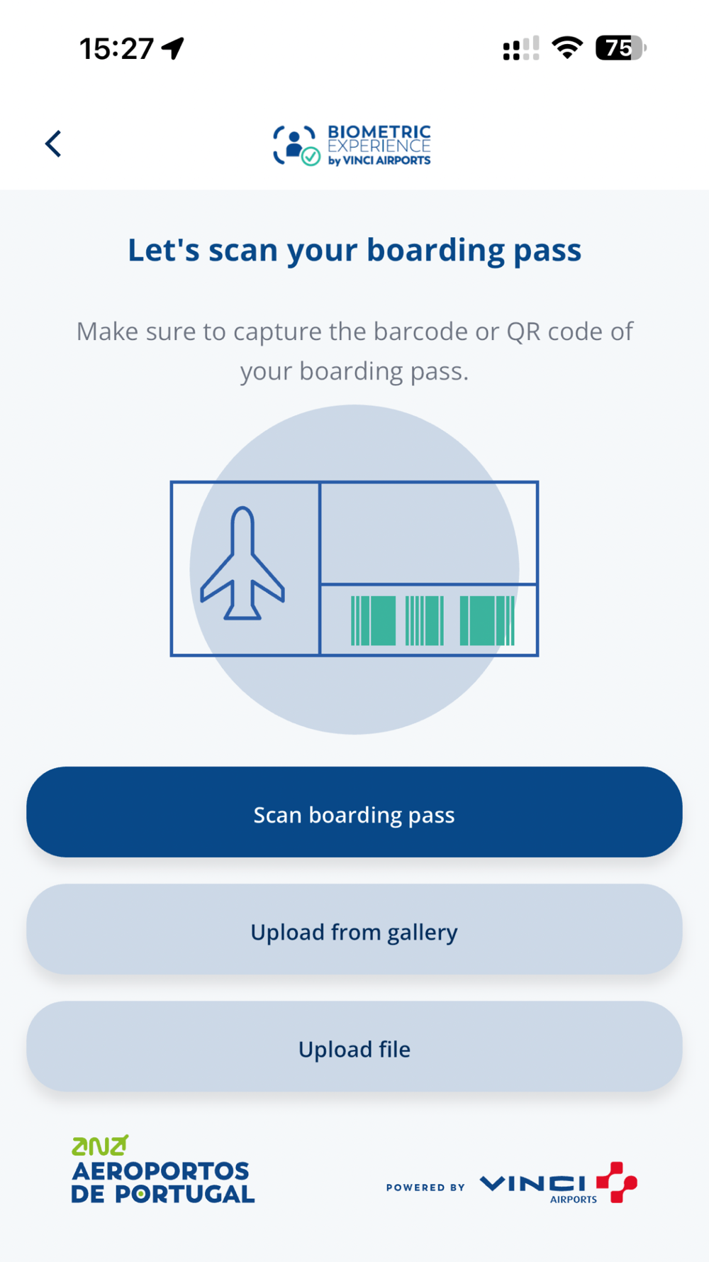 BIOMETRIC EXPERIENCE promove a agilização do processo de registo biométrico, exclusivamente para determinados voos. Agiliza posterior processo do acesso de controlo de segurança e embarque apenas com reconhecimento biométrico, sem recurso a documentos de indentificação.