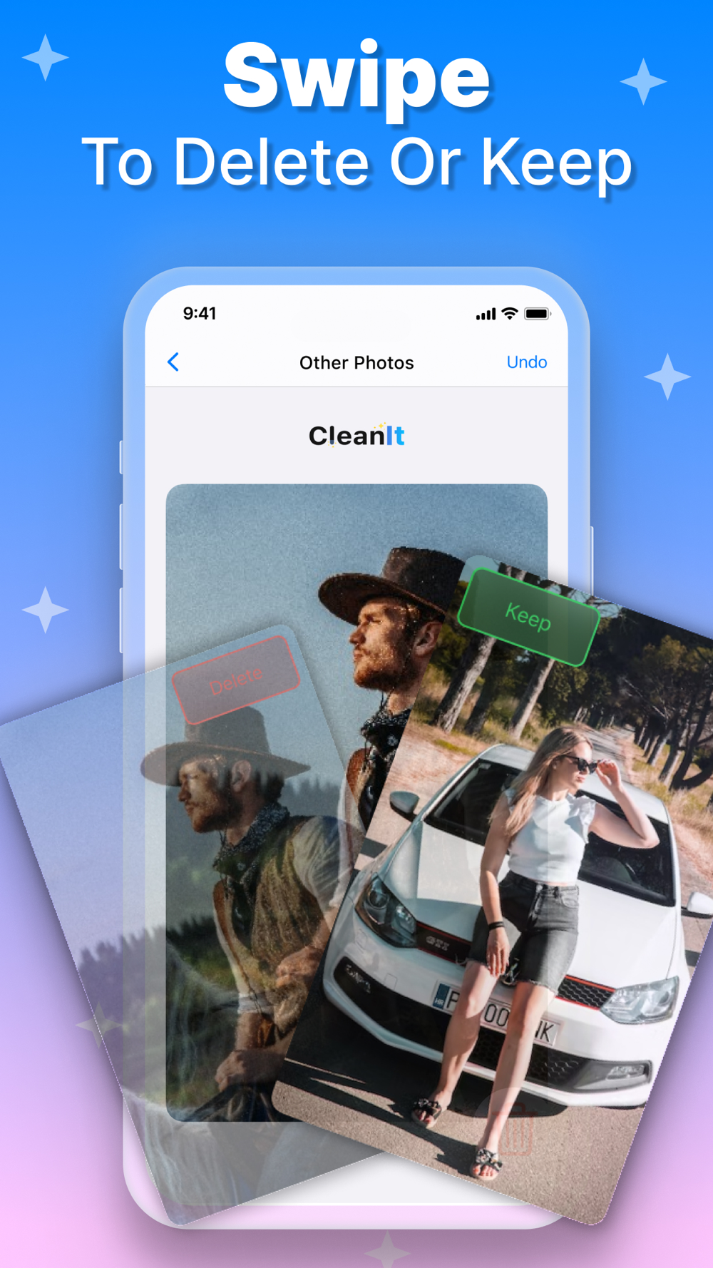Swipe left to effortlessly bid adieu to unwanted photos and pesky duplicates.