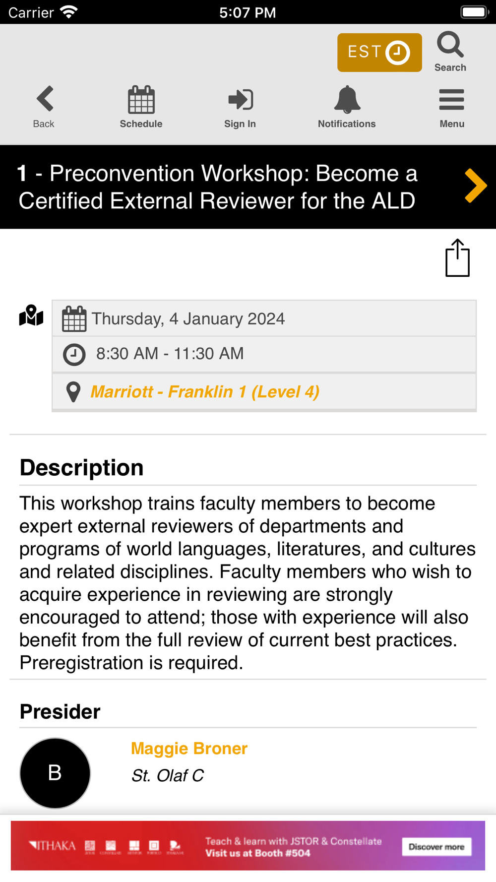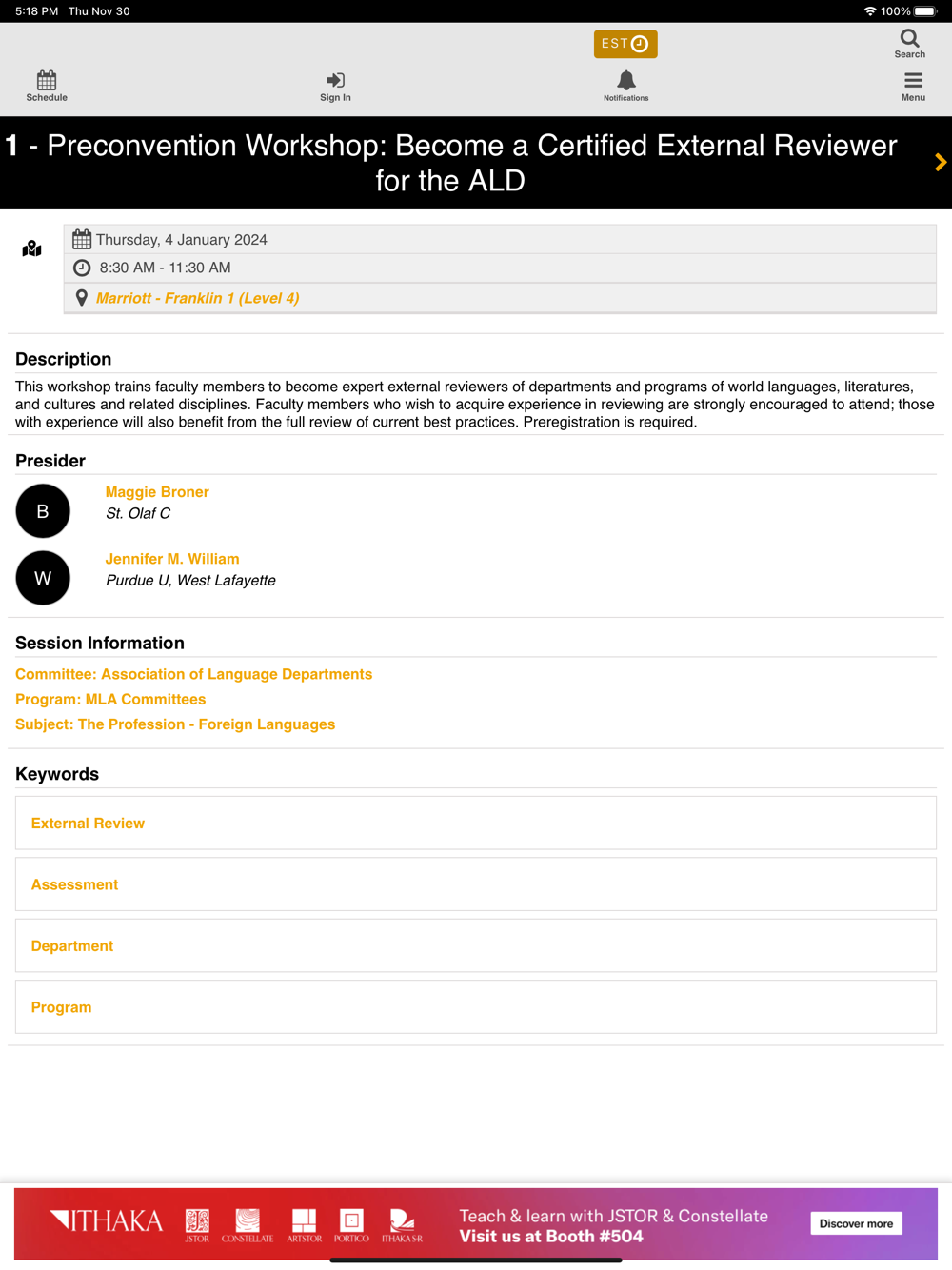 MLA 2024 will be held on January 4th-7th, 2024 in Philadelphia, PA. Login to view Sessions and Papers saved as favorites. View schedules, locations, floor plans, and people. Attendees will now be able to facilitate their experience at the meeting using the mobile app.