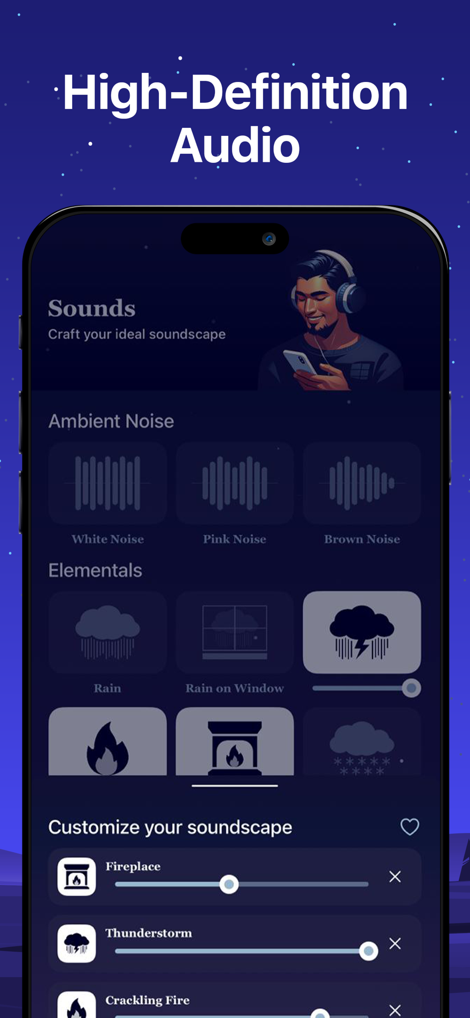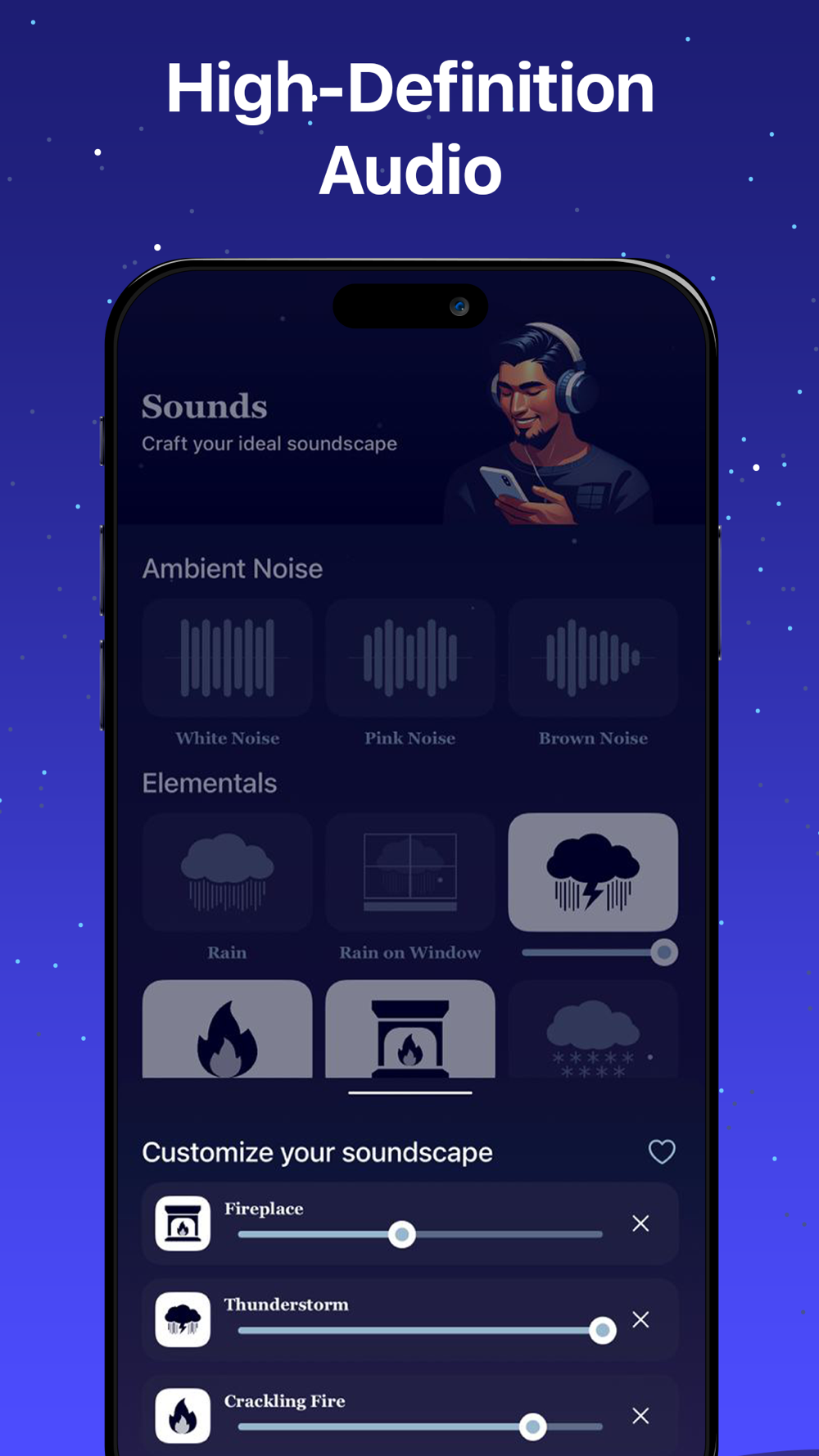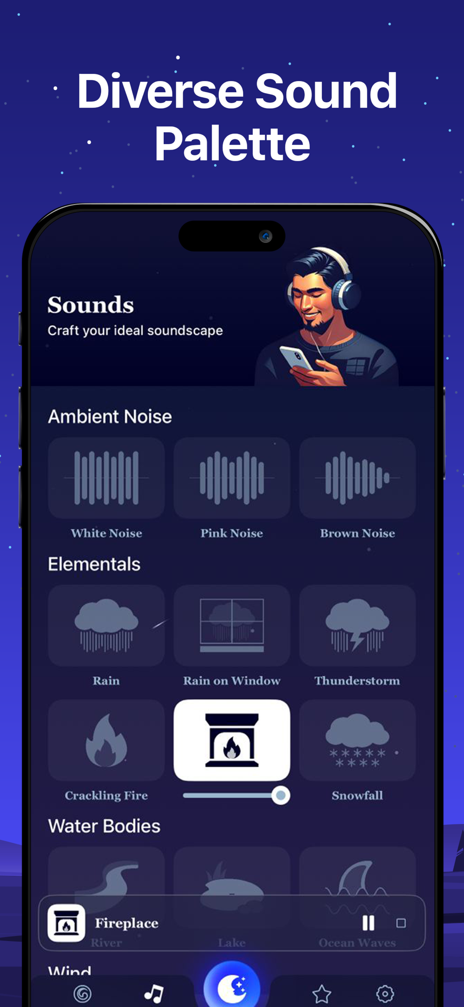 Immerse yourself in our meticulously crafted soundscapes. From the gentle patter of rain to the calming whispers of the forest, each sound is designed to transport you to a state of relaxation and tranquility.