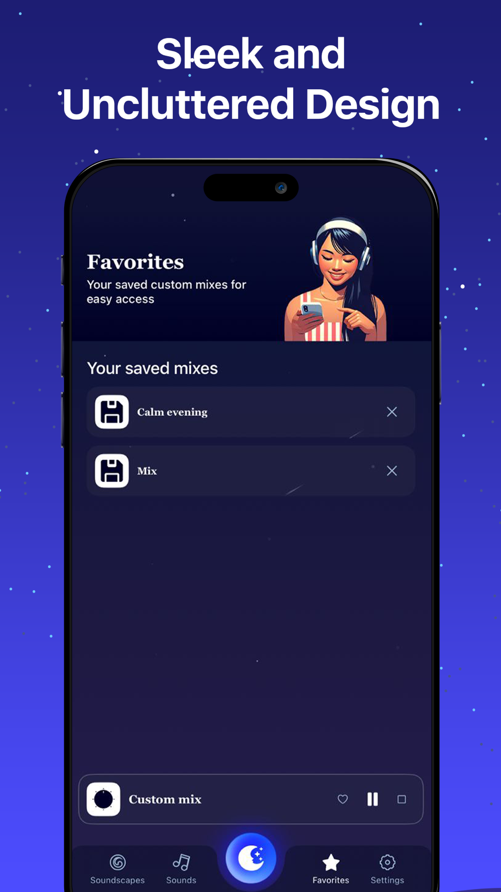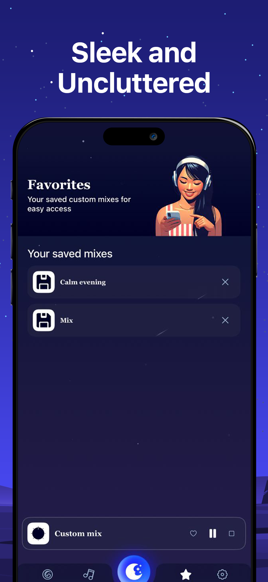 Personalize your sleep environment with our easy-to-use mixer. Blend sounds to create your perfect sleep setting. Save your favorite mixes for quick access anytime.