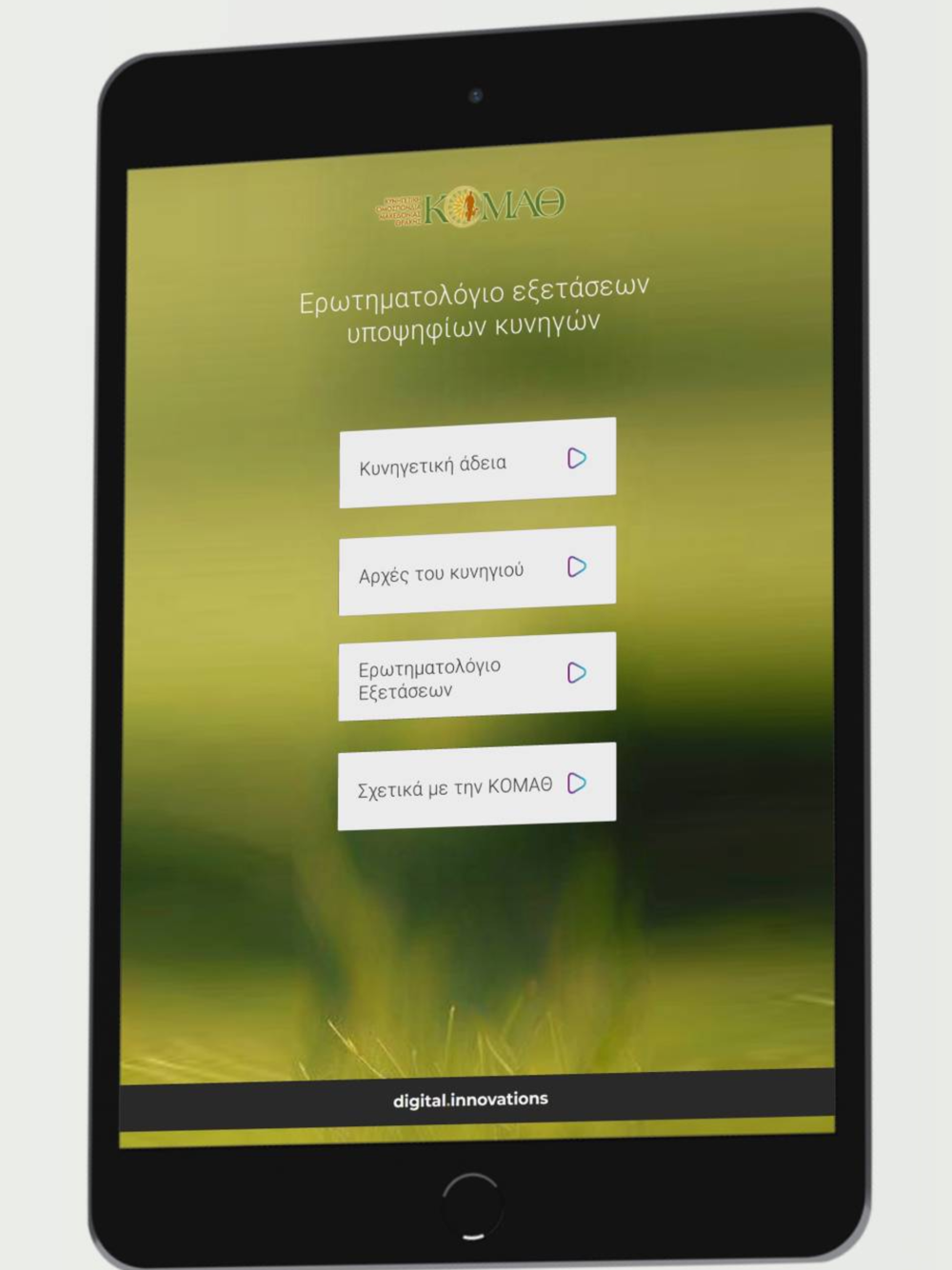 Η εφαρμογή "Ερωτηματολόγιο Κυνηγών" είναι απαραίτητο εργαλείο για υποψήφιους κυνηγούς που ετοιμάζονται για πιστοποίηση. Περιλαμβάνει ερωτήσεις που καλύπτουν όλη την ύλη των εξετάσεων σχετικά με κανονισμούς, αναγνώριση άγριας πανίδας και δεοντολογία κυνηγού.