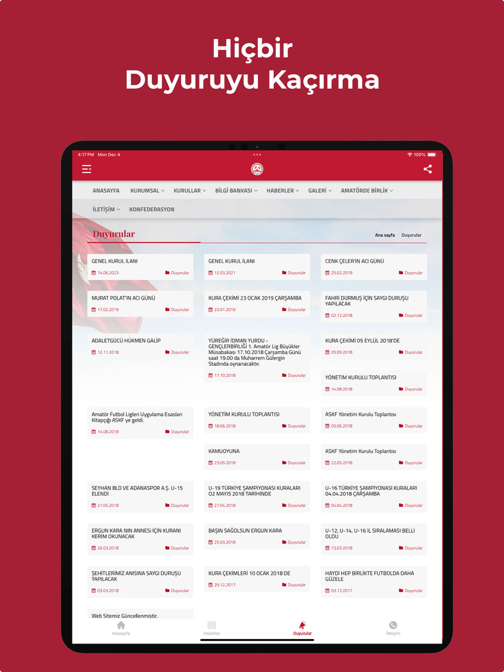 Uygulamamız sayesinde, yayınladığımız haberleri, duyuruları, klüpler ve federasyon ile ilgili gelişmeleri anında takip edebilirsiniz.