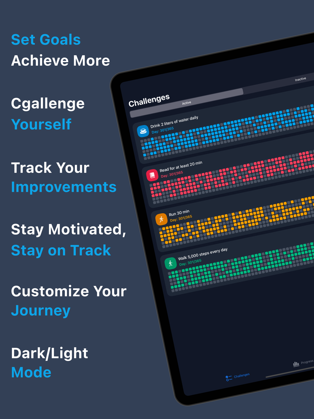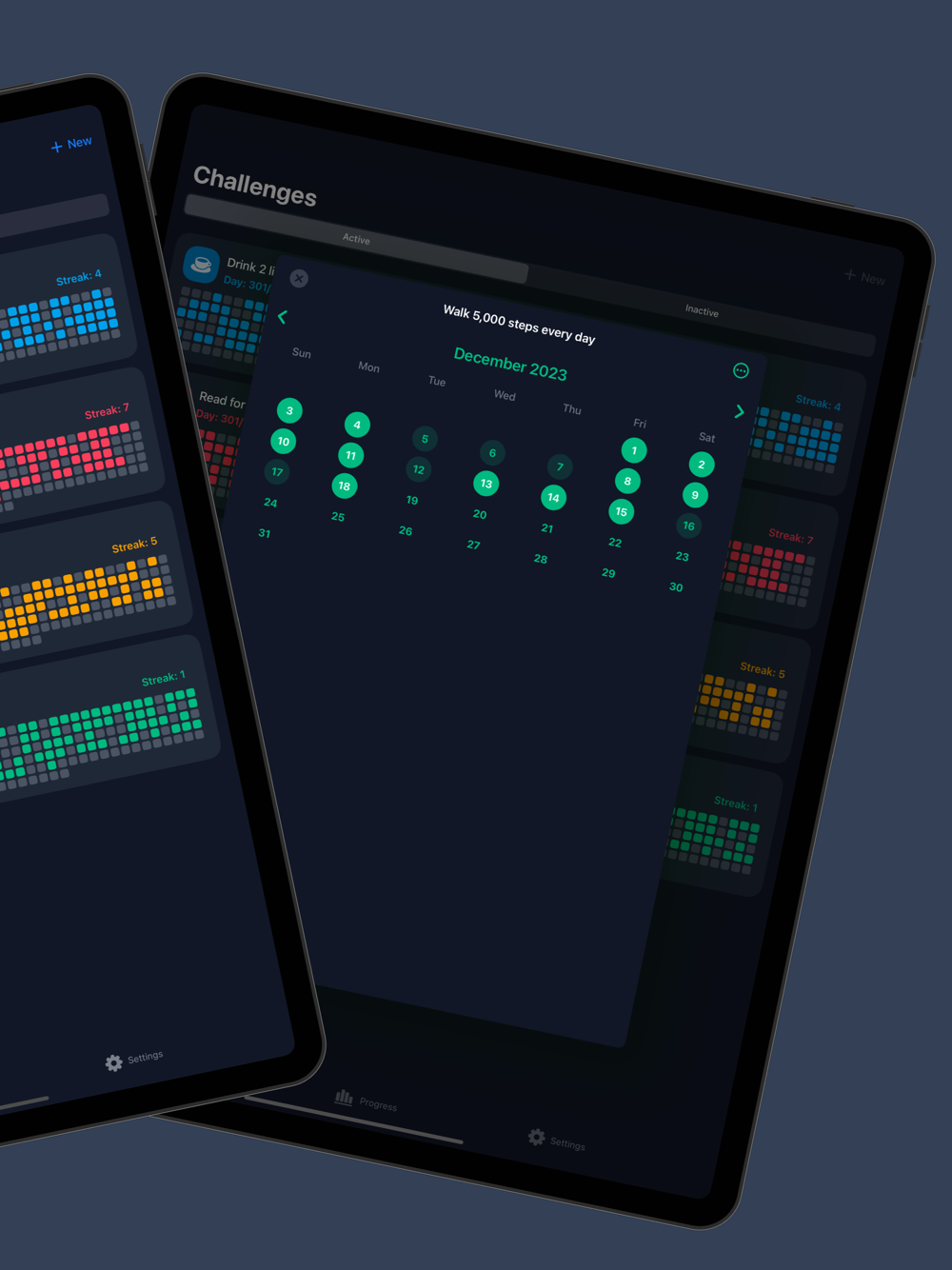 Create Personal Challenges: Tailor your daily, weekly, monthly or yearly challenges based on your personal goals and lifestyle.