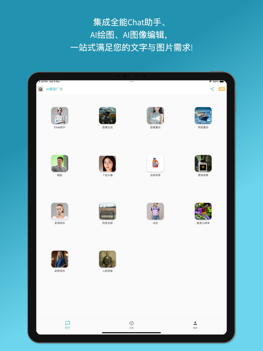 AI影像編輯:集合了熱門的AI編輯工具,包括AI試衣、超解析度提升、背景移除、背景替換、AI換臉、人像修復,個性頭像製作,表情修改, 姿勢修改, 以及任意物體去除(如雜物、水印等)。